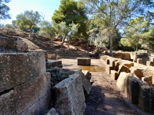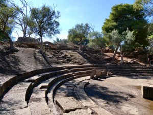 We moved on from here to the adjacent Theatre that was built between the 2nd and 3rd centuries AD. The Theatre included a nobles entrance for those with prime seats at the front of the Theater and three different entrances for the upper levels. The Theater was a semi-circular structure built into the hillside, which could at one time seat up to 4,000 people. The Theatre featured an orchestra section at the front of the stage and behind this was the actual performance stage. Unfortunately, there was very little left of the seating area.