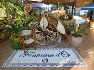 So after the purchases we hopped back in the van and drove a short distance along the Mediterranean to Fontaine d’Or, a restaurant up on a hill overlooking the Mediterranean that has been on site since 1986. We were given the VIP treatment with a table on the top floor of the restaurant and spectacular views. I ended up ordering some shrimp bourek (springrolls), bread with a house made dip and fabulous garlic butter shrimp. Delicious.