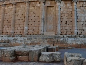 The temple featured a courtyard with steps to platform and the remains of a cella, which is likely where the statute of the deity was kept. In fact, a gigantic portion of a leg was found in the cella, but nothing else was found to answer who was worshipped here. And n the center of the temple were the remains of a sacrificial alter. There were also the remains of columns and porticos so the temple was most likely partially covered.