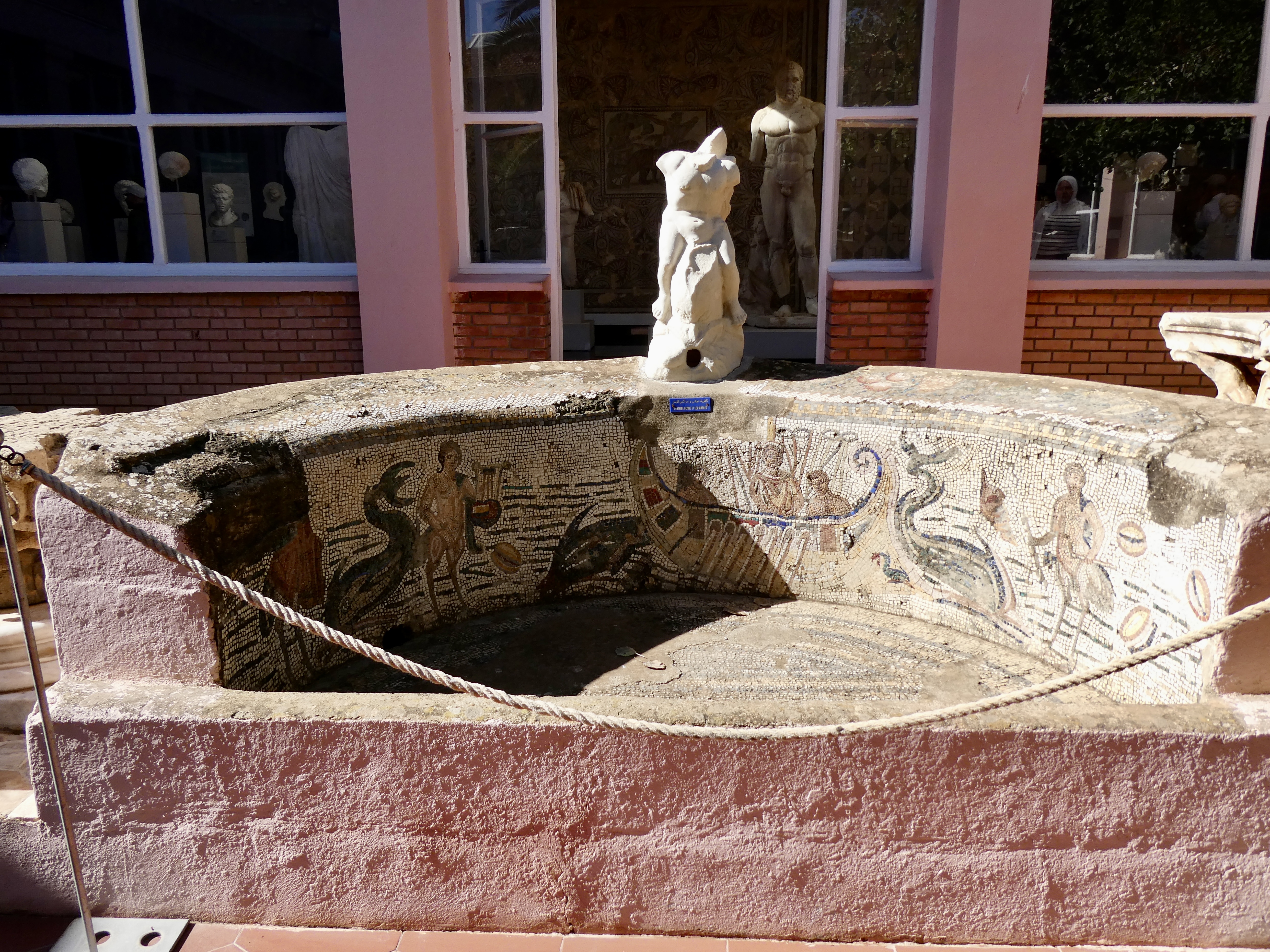 From here, I walked into the courtyard in the middle of the museum and while most of the remnants were just bits and pieces of columns, there were the remains of a fountain that had been lined with a fresco titled Homer’s Odyssey Fountain Ulysses and the Sirens. The fountain was found in the remains of a Roman villa and likely dates to the 1st century AD.