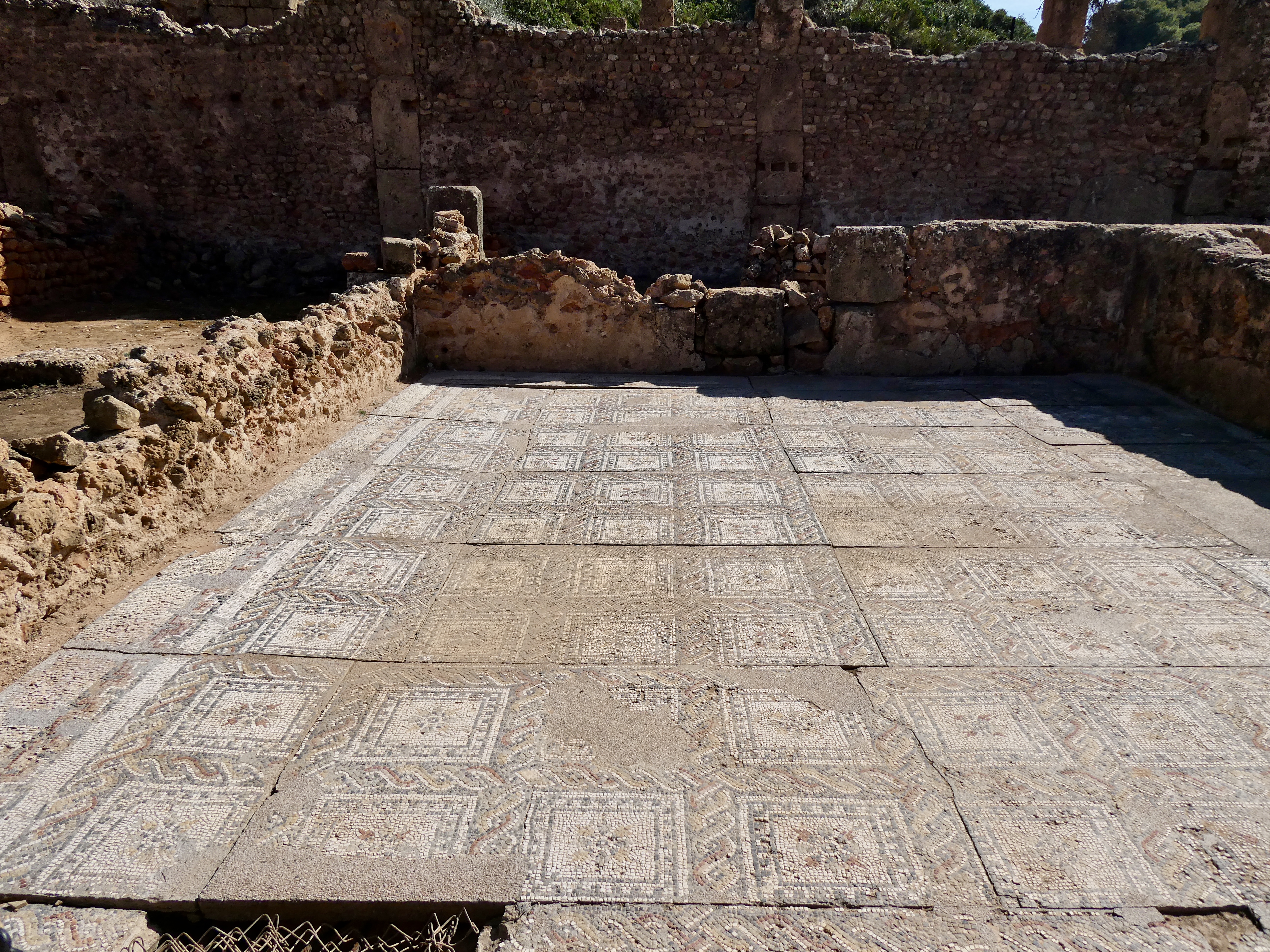 Anyway, the walk took us to the Great Basilica dating to the 4th century AD. The Basilica was approximately 58 meters long and 48 meters wide and was surrounded by columns that supported seven naves (likely small chapels). The basilica floor was covered in mosaics some of which remained today (although in