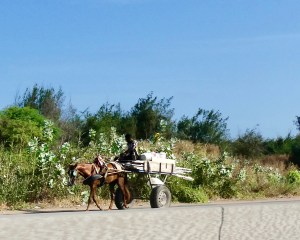 This morning we passed a lot of everything. Of course there were the horse carts with clippity clop of their hooves on the payment and the jingling bells on their harness, which reminded me of Christmas. But more interesting were the Saturday markets we passed with women bartering and walking along with their wares on their head while the occasional soccer game was being playing on dirt and dried grass nearby.