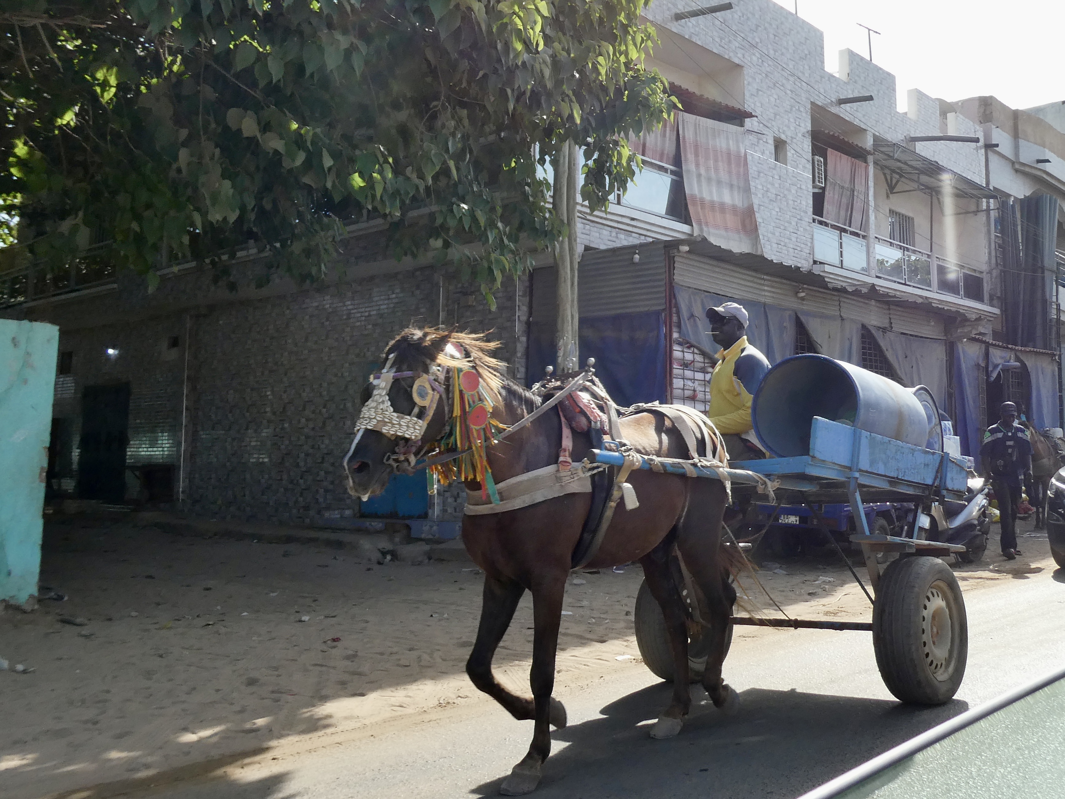 Anyway, the trip took us north on the peninsula past colourful Dakar buses and the occasional horse cart or two along the highway before we turned off and proceeded for the better part of an hour at a VERY slow pace through village after village. In fact, the drive reminded me of the time I went from Delhi to Agra (180 km) and it took 5 hours because of the endless villages.
