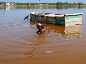 And when I say that this guy (who was in his early 30s) had arms I mean HE HAD ARMS. The work was incredibly laborious and in order to withstand the hours in the salty waters the harvesters cover themselves with shea butter. However, despite the effort to protect the skin, spending 6-7 hours per day in salt water damages the skin. In fact, our boatman was at one time a harvester and he showed me all the scars on his skin from his days as a harvester. It was brutal.
