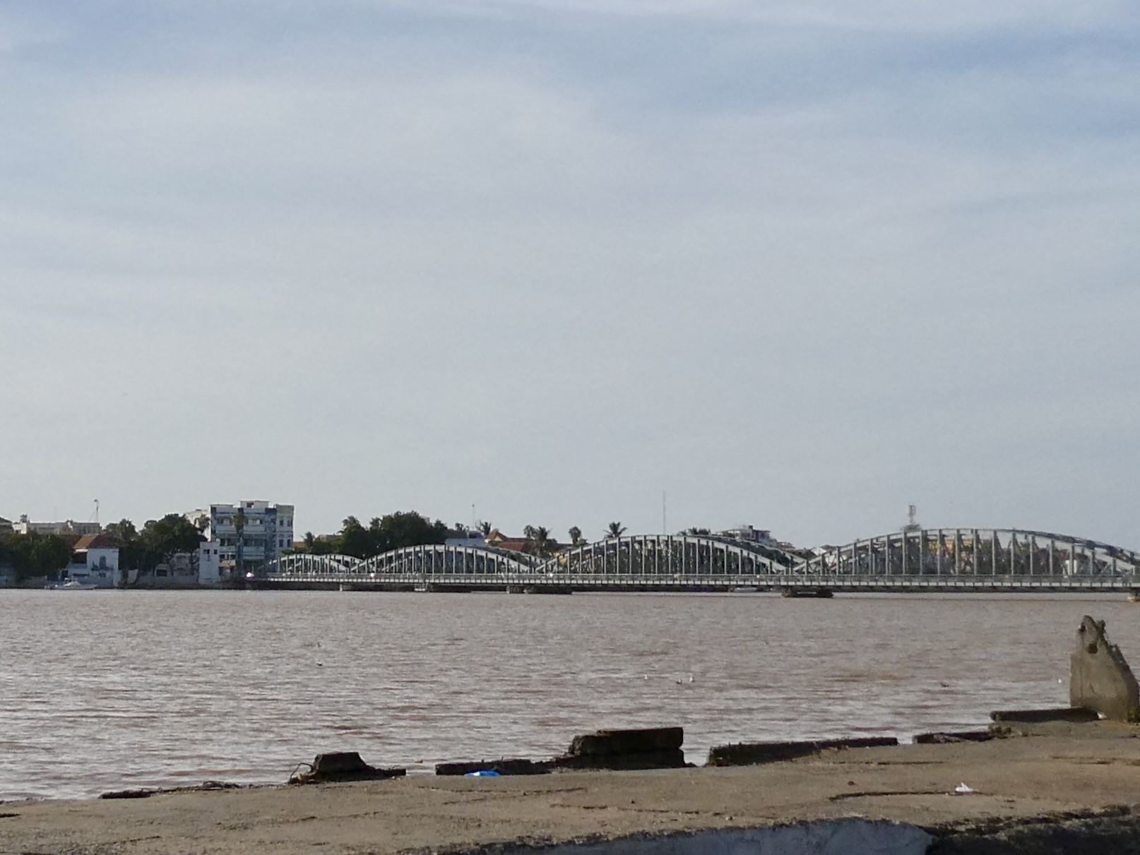 By 4:30 we were pulling into Saint Louis and after passing through what looked like another village, we eventually crossed the Faidherbe Bridge built in 1865 and designed by Gustavo Eiffel (so that makes two bridges I have crossed on this trip by Gustavo Eiffel with the other being in Girona, Spain). The bridge connects the old town of Saint Louis on N’Dar Island in the Senegal River with the mainland. And yes, the city is listed as a UNESCO World Heritage site in 2000.