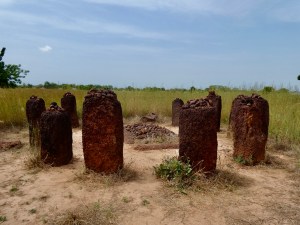 So once we arrived, Abraham, the resident guide took me on a tour of the megaliths. The tallest stone was nearest to the entrance and nearby was the first of eleven stone circles. And apparently it is custom for the villagers and visitors alike to take a small stone and place it on top of on of the stones in the circle and make a wish so … when in Rome….