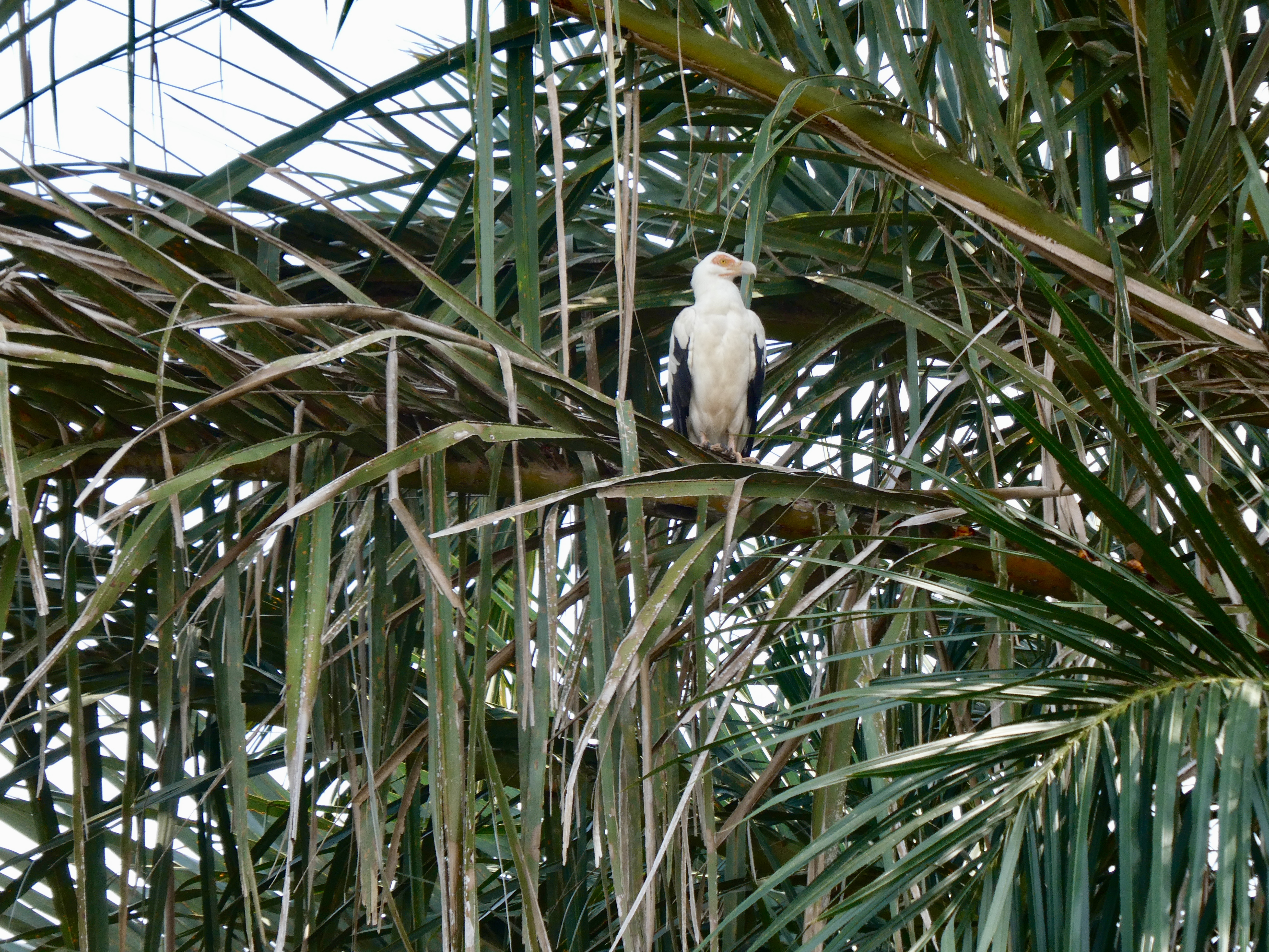 So once in the boat, we made our way along the very wide river passing by palm and date trees. Overhead there were numerous small birds flitting about, but we eventually saw a much larger bird hanging out on a branch known as a vegetarian vulture. It apparently does not feed on meat, but instead feeds on berries on the trees in the area.