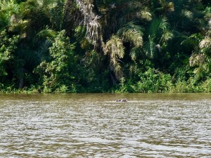 So from here, we motored to two other islands closer to the hotel and as we entered the little channel between the two islands, we spotted a hippo. Now I have seen hundreds of hippos, but seeing this hippo was special because they are apparently a rarity in these parts. We watched the hippo go under water and surface a couple times before moving on. Unfortunately, the one picture I was able to take is marginal at best because the hippo only surfaced briefly making it hard to capture the animal. The Captains said that the noise from our boat was likely keeping the hippo under the water.