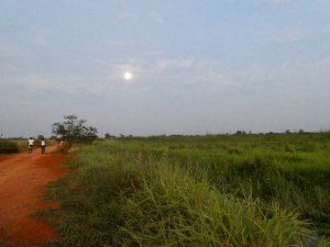 The crossing took only a couple minutes and once on the other side, we went for a walk along a sandy dirt road as the sun was setting. Now, sadly, we probably should have started out at least a half hour earlier. By the time we got about 15 minutes down the road, the moon had risen and the sun was gone.
