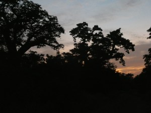 We eventually reached a bend in the road and spotted the rustle of trees in the distance. A sure sign of monkeys. They turned out to be red colobus monkeys and the tree was full of them. Unfortunately, the dark made it almost impossible to see them, but periodically the monkeys would jump from one tree to another so we were able to catch a glimpse of them. Now my trigger finger was slow and I did not capture a single picture. And why I didn’t think to simple turn the camera to video and catch the monkeys in flight is beyond me. Stupid.