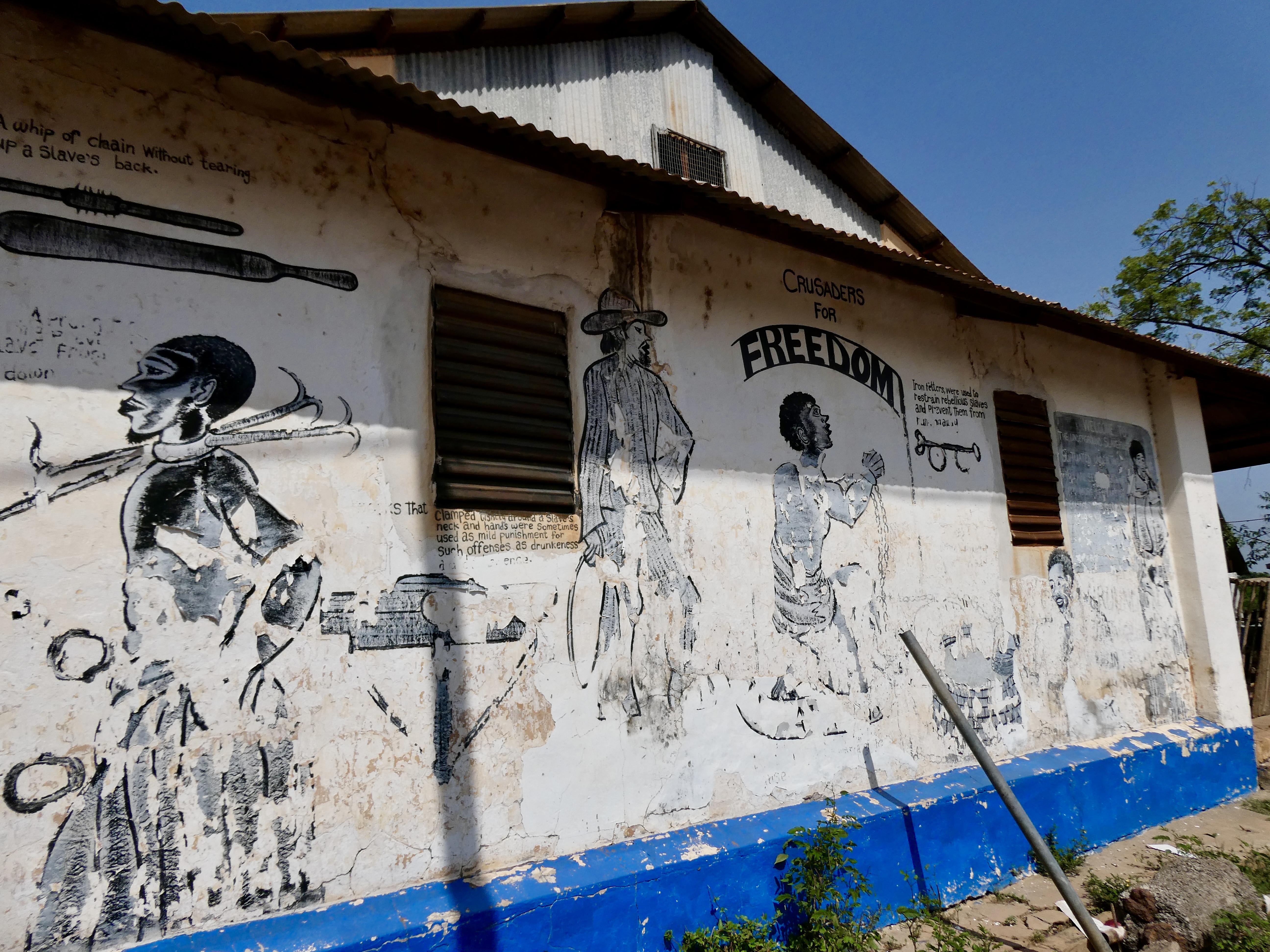 Our final stop was the slave dungeon. Now the only attractive thing about this stop was the artwork on the outside of the building. The proprietor was not around and I was not allowed to go in and have a look at the dungeon where prisoner slaves were kept in deplorable conditions. Apparently, when the river was at high tide, it would flood the dungeon drowning some folks, but providing drinking water to others who were tall enough to withstand the flood waters or who could swim. And the water would wash away the fecal matter and other waste when the tide went out. It might be a good thing I did not get a look inside.