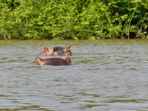 And just when we thought we were good, two more hippos surfaced in the distance. We ended up parking the boat and watched while three of the four hippos we spotted continued to surface, open their jaws like they were yawning, roll over, and generally play around. The guide on our boat from the park had no idea why the hippos were in a playful mood, but we were the lucky beneficiaries of quite a show.