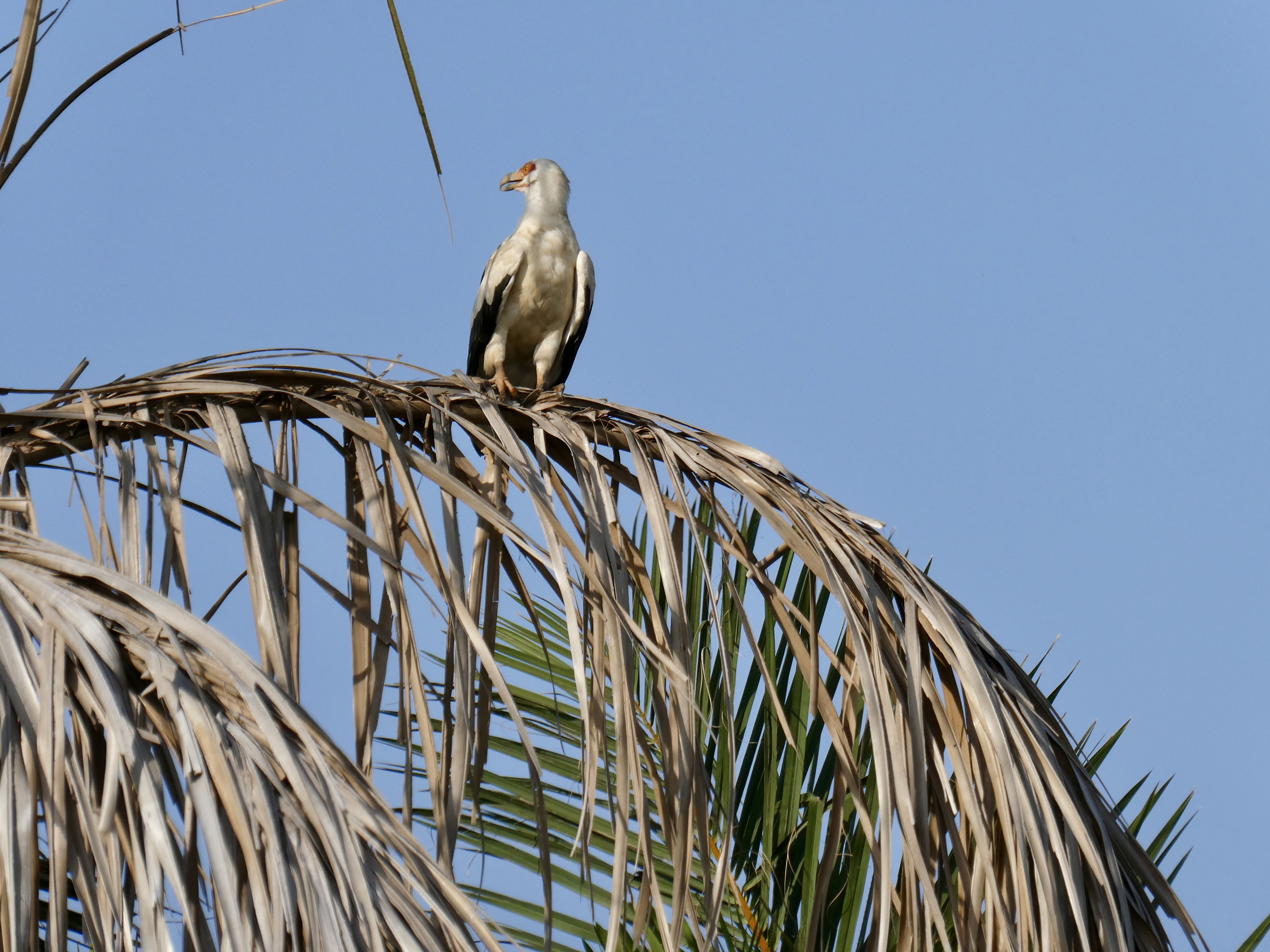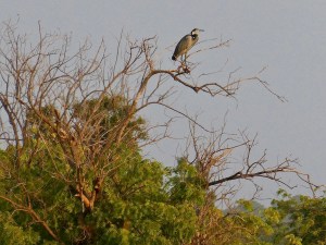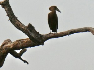 Anyway, after watching the feeding fest for a few minutes, we left the chimps alone and headed back to the hotel. Along the way, we spotted a number of birds flying overhead and once again saw a vegetarian vulture hanging out on a branch over the river.