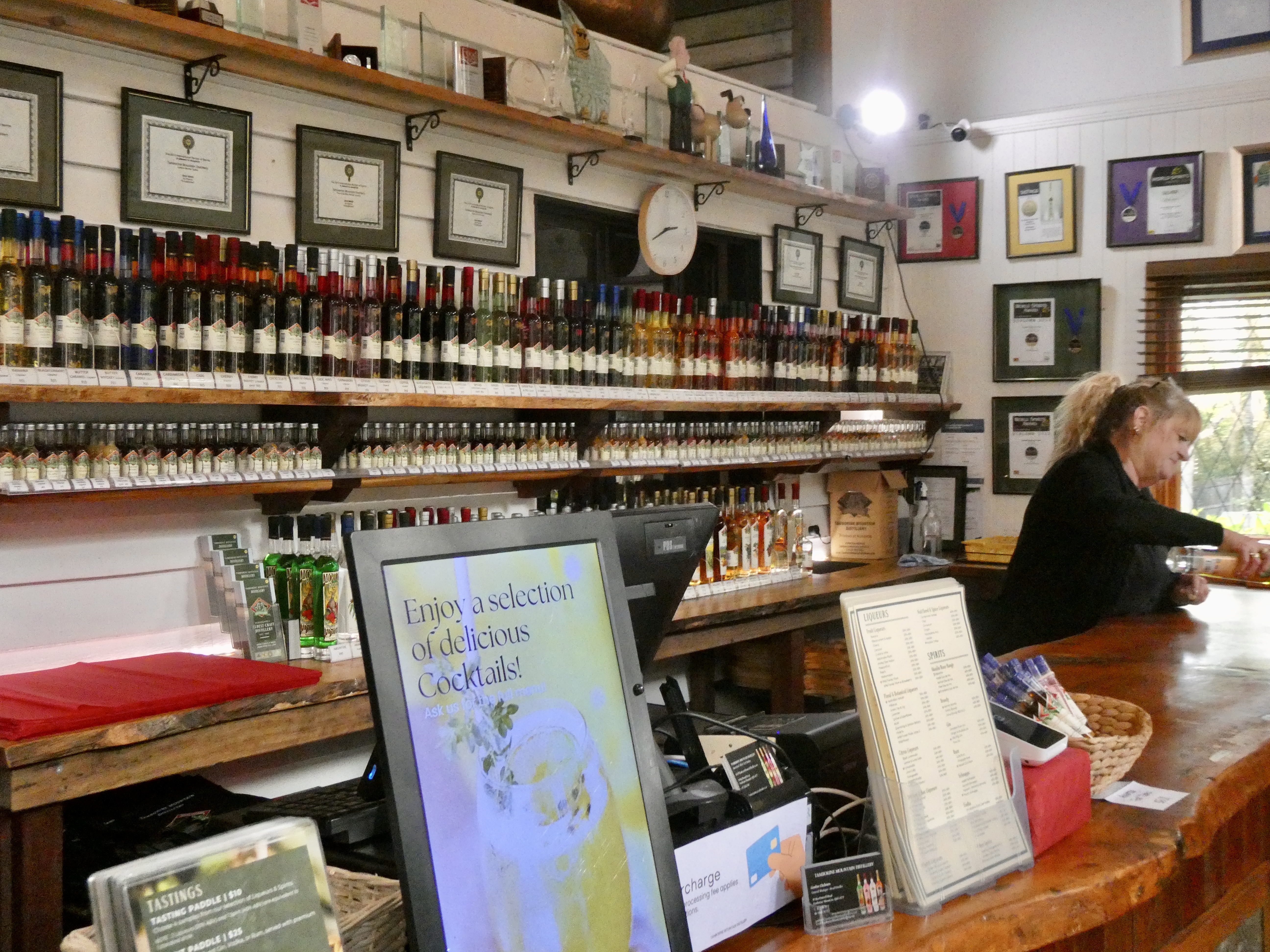 Anyway, from here, our last stop of the day was easily the most enjoyable. We drove through the little village of Mt. Tambourine to the Tambourine Mountain Distillery where all sorts of liqueurs and spirits are distilled. In fact, the list of tastings on tap was absolutely enormous and the inside of the distillery looked like a science lab. There were bottles of liqueurs everywhere as well as bottled ingredients covering almost a quarter of the main room. (And sadly, I never did find out what the ingredient “worm wood” was all about.)