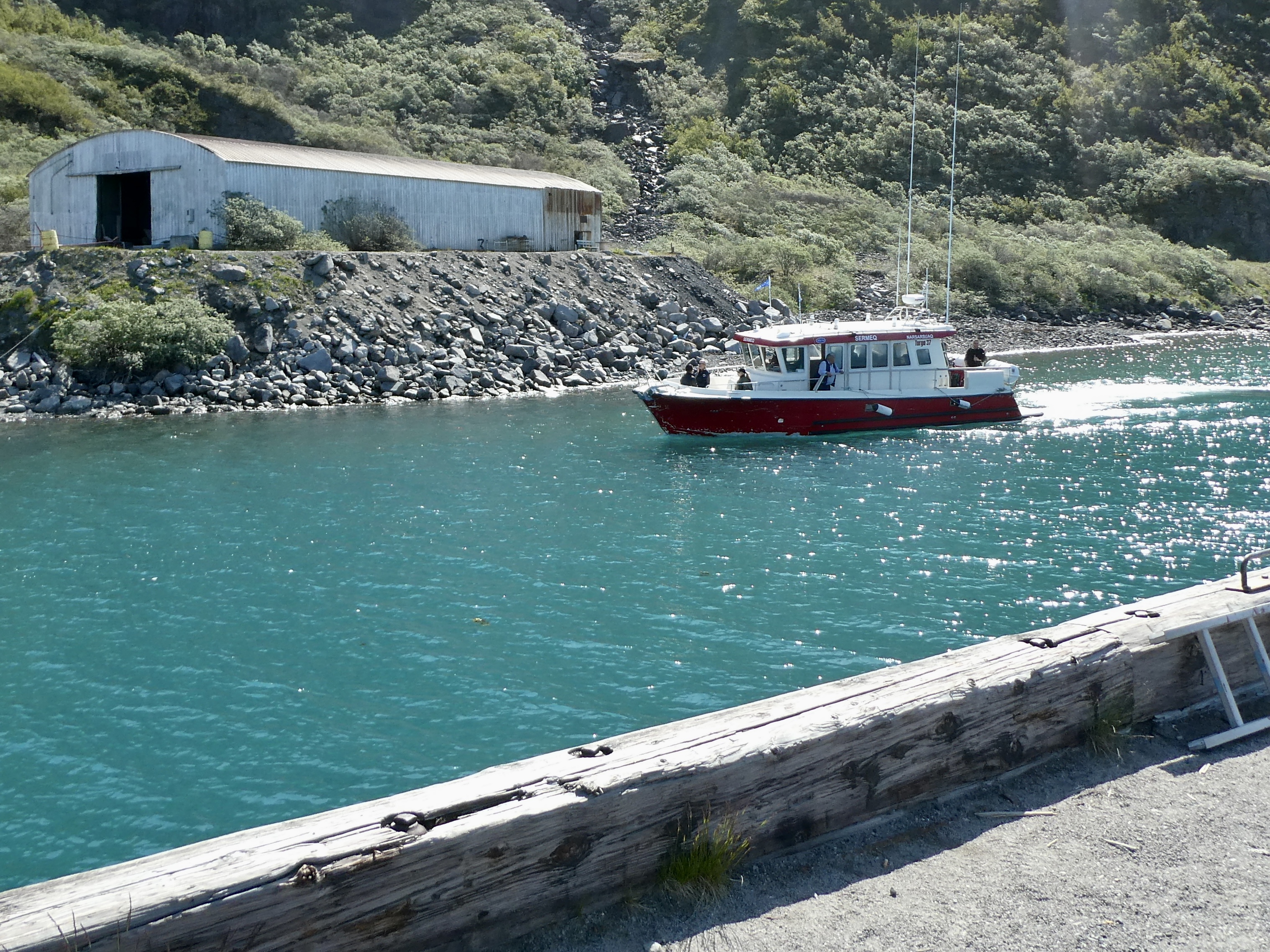 I headed back to the hotel, grabbed my luggage and put it into the van and hopped in for the short trip to the dock. We were going to be sailing south in the Tunulliarfik fjord to the small port of Itilleq and from there we would go on a 5 km “easy” hike to cross the Kongevejen, to the small settlement of Igaliku. There were seven of us going on the trip to Igaliku (all independent travellers, but all headed to the same place as arranged by Greenland Tours).