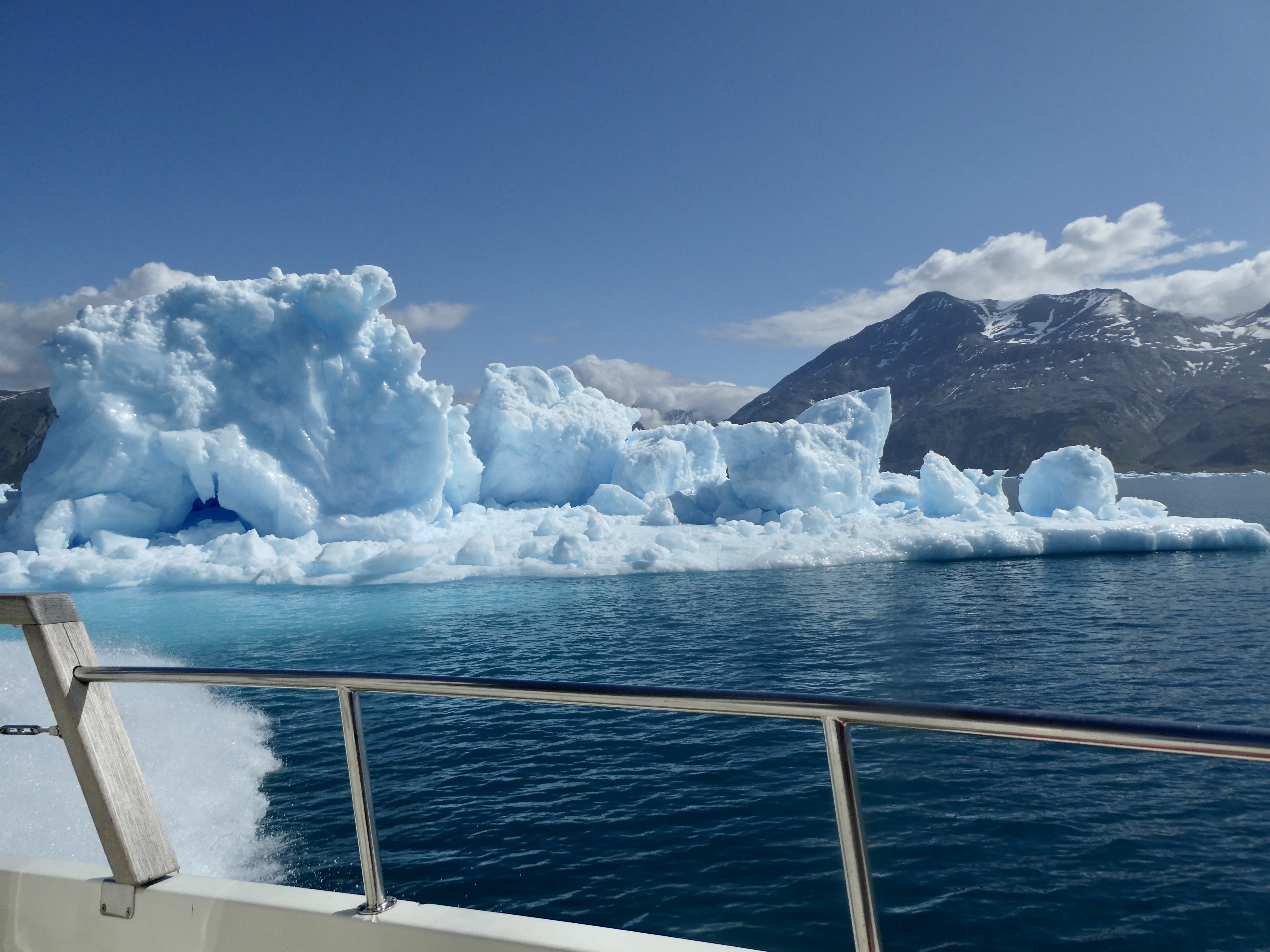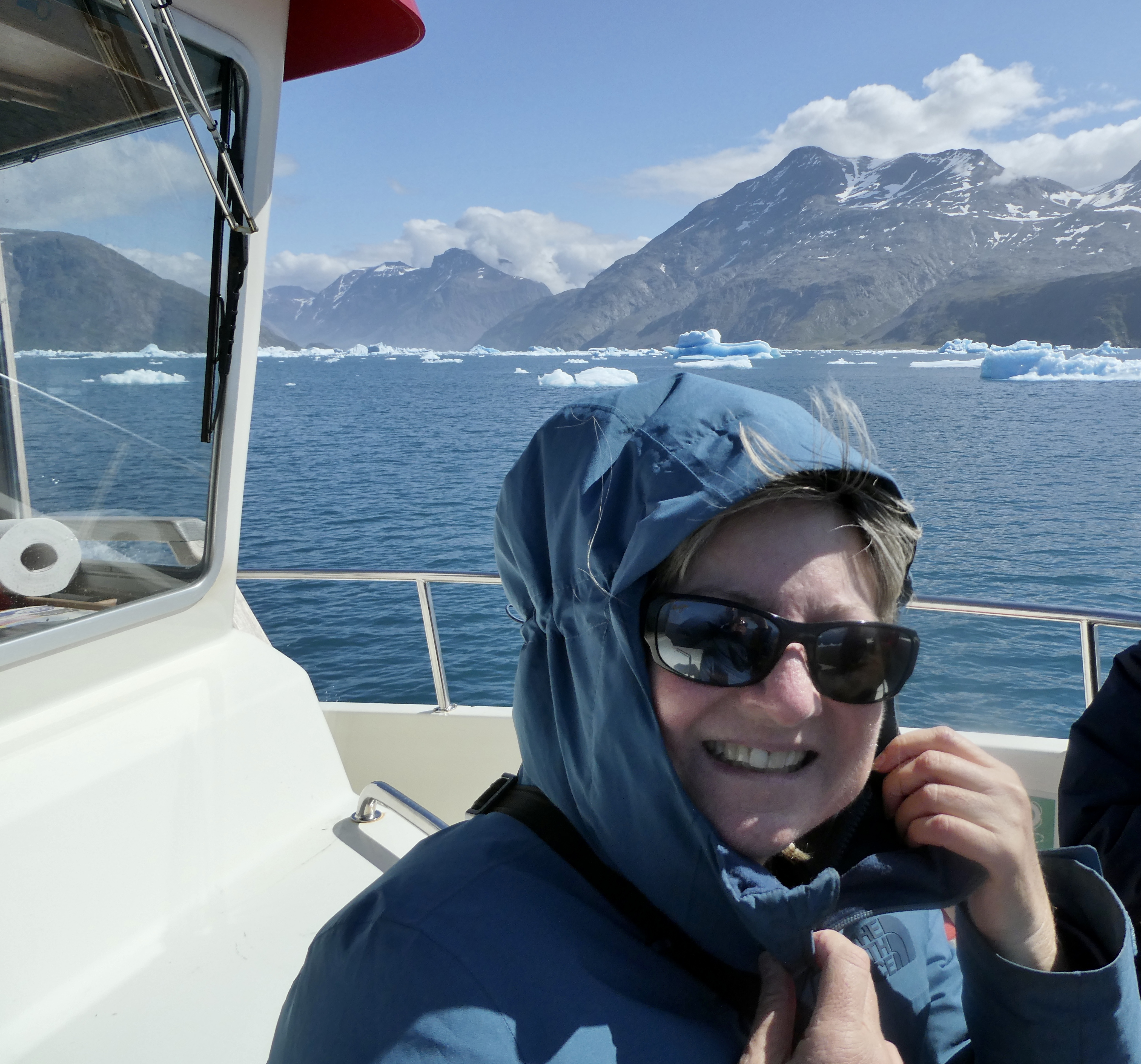 Anyway, once at the dock, we were surprised to see two icebergs floating really close by. This turned out to be the first of many we would see on the trip. Once on the boat, the 30 minute trip turned out to be spectacular. The weather was perfect, albeit rather chilly, and the views were incredible. Within 10 minutes we found ourselves in the middle of iceberg alley. Icebergs were everywhere. We even saw some deep blue icebergs, which is a sign of very old ice that has caved from a glacier. (I guess that is probably bad, but a sure sign of global warming.)