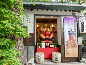 Once we left the building, we crossed the street and stopped at the tiny Yaminoke Inari Shrine, which is a shrine worshipped by the locals in Tsukiji for safe voyage, averting misfortune and achieving good luck. Now the cool thing about this shrine is that they have an annual festival in which lions’ heads are paraded through the streets. Two lions heads dating to 1848 still exist and were on display at the shrine. Best part of the shrine for me.