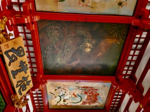 Now just as we arrived inside the main hall, the head monk was starting mid morning prayers, which included a lot of chanting, bell ringing and reciting the Sutra (a prayer). And while this was fine and all, I was more consumed by the gorgeous ceiling, which featured fabulous paintings, including a dragon.