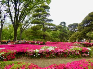 Izumi suggested we walk to the north gate and enter from the back side so ten minutes later and zero line, we were strolling through the gate to the gardens and past the enormous palace stone walls. Now the gardens were lovely, but I wouldn’t describe them as spectacular. There was a beautiful tea house and a grove of “in full bloom” azaleas in multiple colours, a koi pond (of course) and lots and lots of pine trees (which are believed to promote longevity). However, there was nothing here that really said “hey this is the residence of the emperor, how do you like my fabulous gardens”.