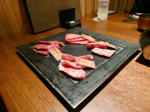Eventually we went up the elevator to the 17th floor for some nice views of Tokyo (although I am on the 30th floor of my hotel so, quite frankly, my view as better and the windows on the 17th were a bit dirty). We then went back downstairs past the concert and down another alley to restaurant where we were served miso soup and 4 different cuts of Kobe beef, which we grilled up on the little hibachi on our table. The meat was absolutely incredible. (Not sure how I can ever go back to USDA again.)