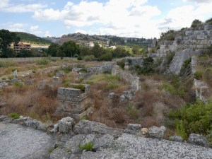 As we entered the site, we walked along an old Roman road past a several blocks long necropolis (cemetery) that was constructed between a Byzantine arch at one end and a huge Roman triumphal arch at the other.