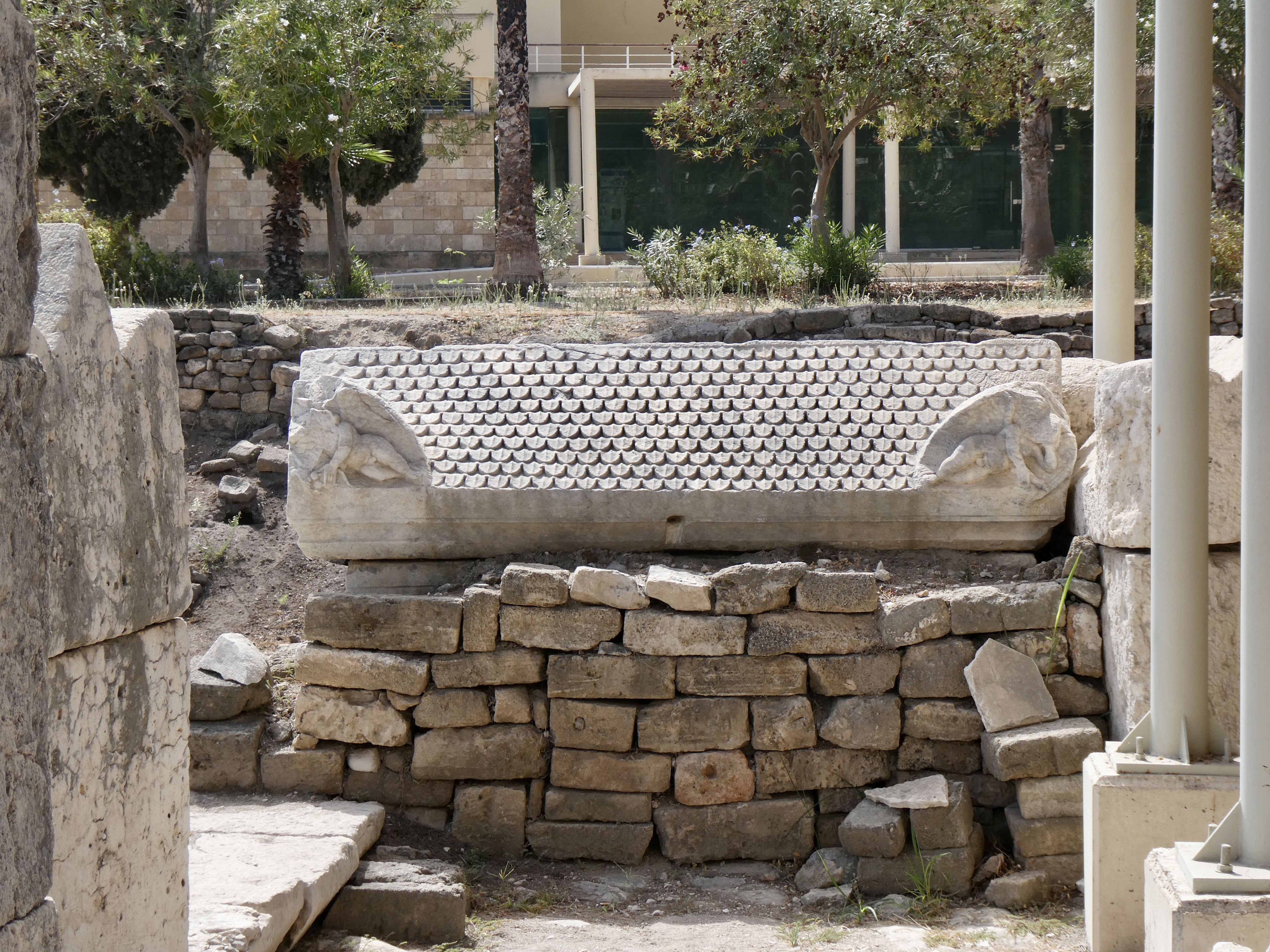 Behind the throne were stones carved with little animal, including a deer and beside the site was the Greek temple where the faithful worshiped Echmoun. Nearby there were basins for washing, the remains of Roman columns and mosaics that were once part of a Byzantine church.