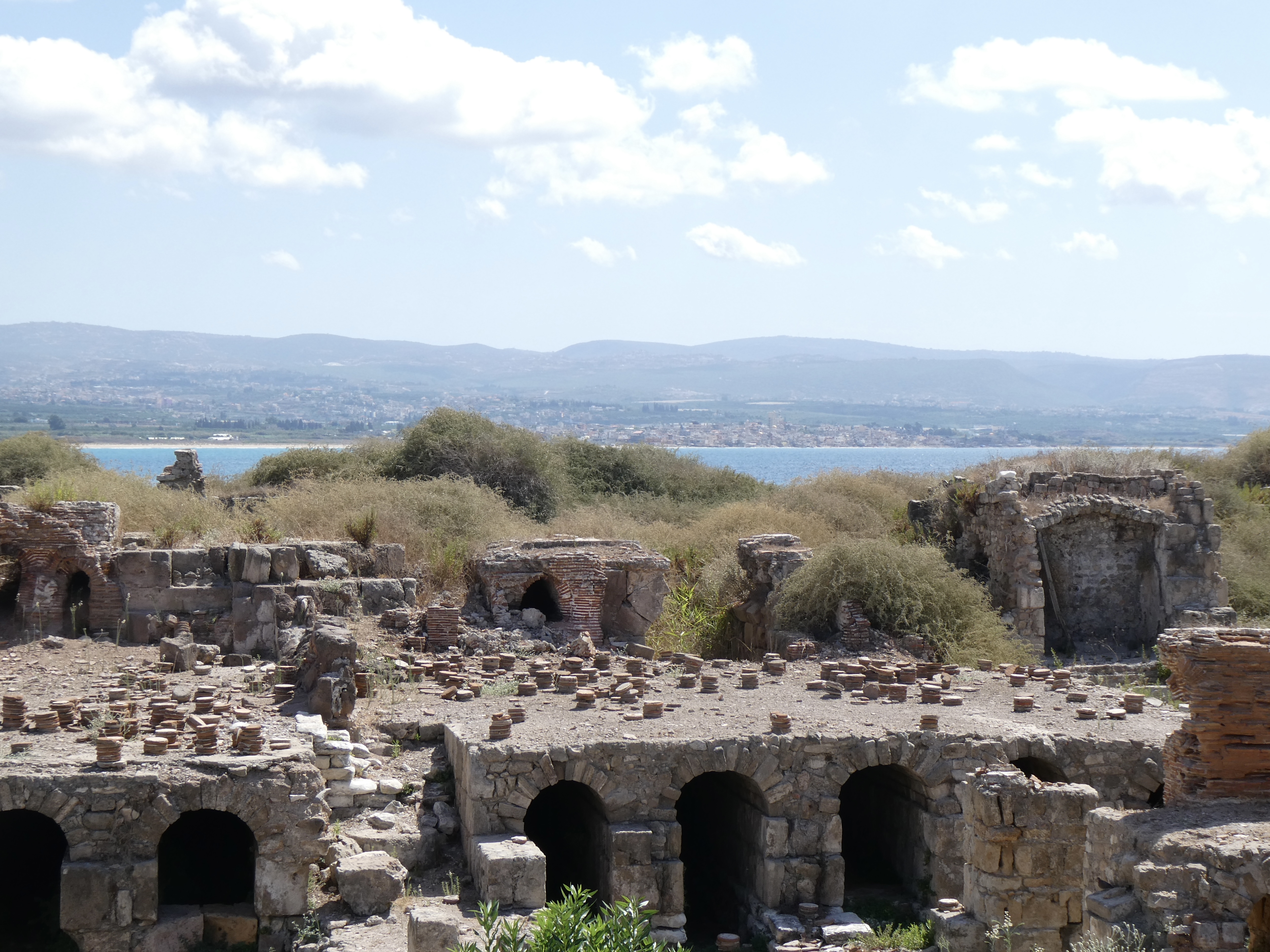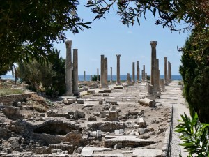 We then walked back from the hippodrome to the car and made the quick ten minute trip along the Mediterranean to the second site, Al Mina. Now Al Mina was a Phoenician city that was at one time on an island, but Alexander the Great bridged the gap between the island and the mainland when he conquered the island. Eventually, both the Romans and the Byzantine controlled the site, which includes a Byzantine basillica surrounded by Roman columns, a swimming pool used for water sports, Roman baths and gorgeous sea views with a submerged harbour.