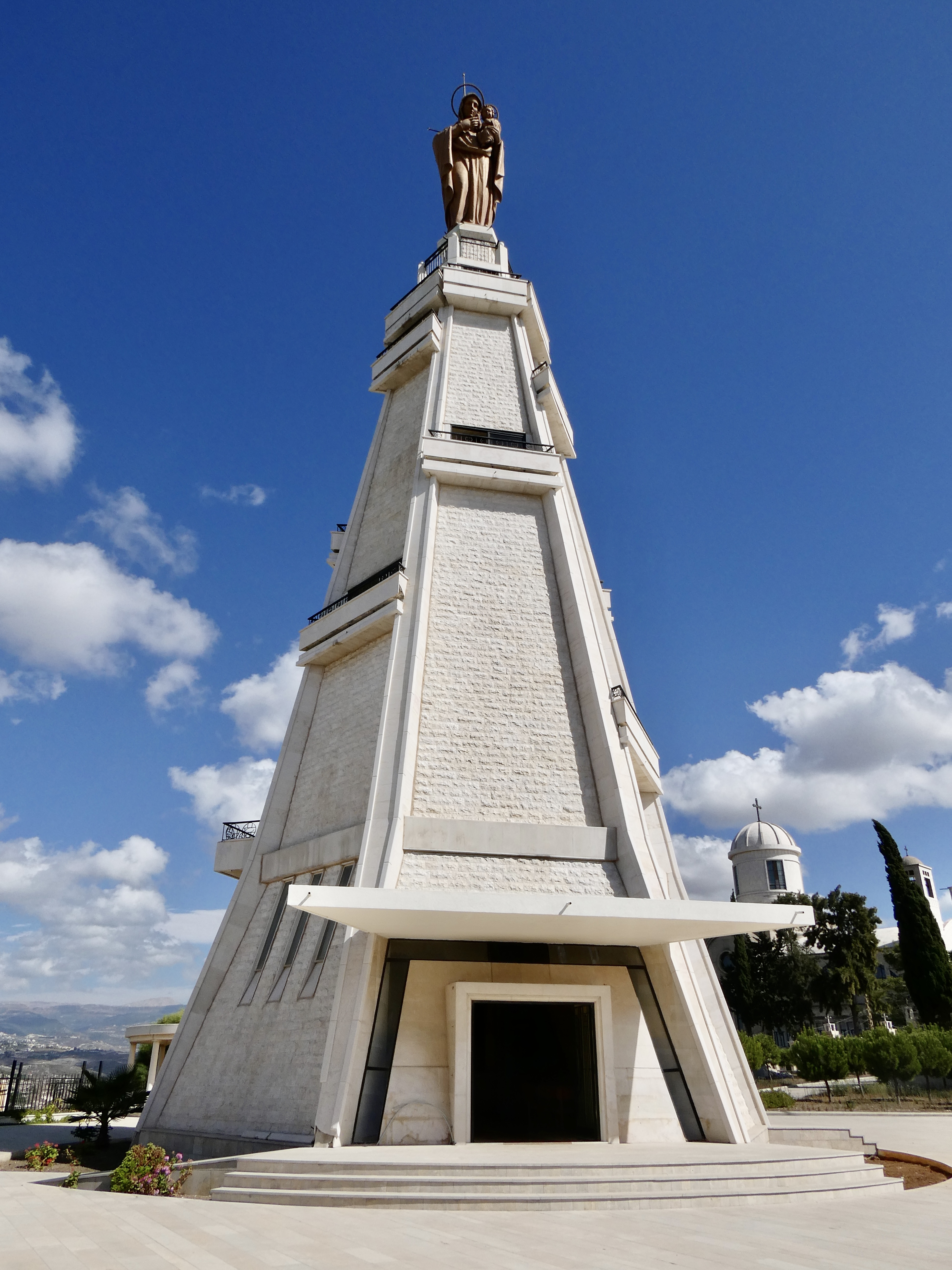 The trip back to Sidon took us past the same banana plantations, as well as little shops, veggie and fruit stands and lots and lots of traffic. Almost an hour after leaving Al Mina, we were winding our way up the hillside to the little town of Magdhdouche to the shrine and magnificent tower dominating the site.