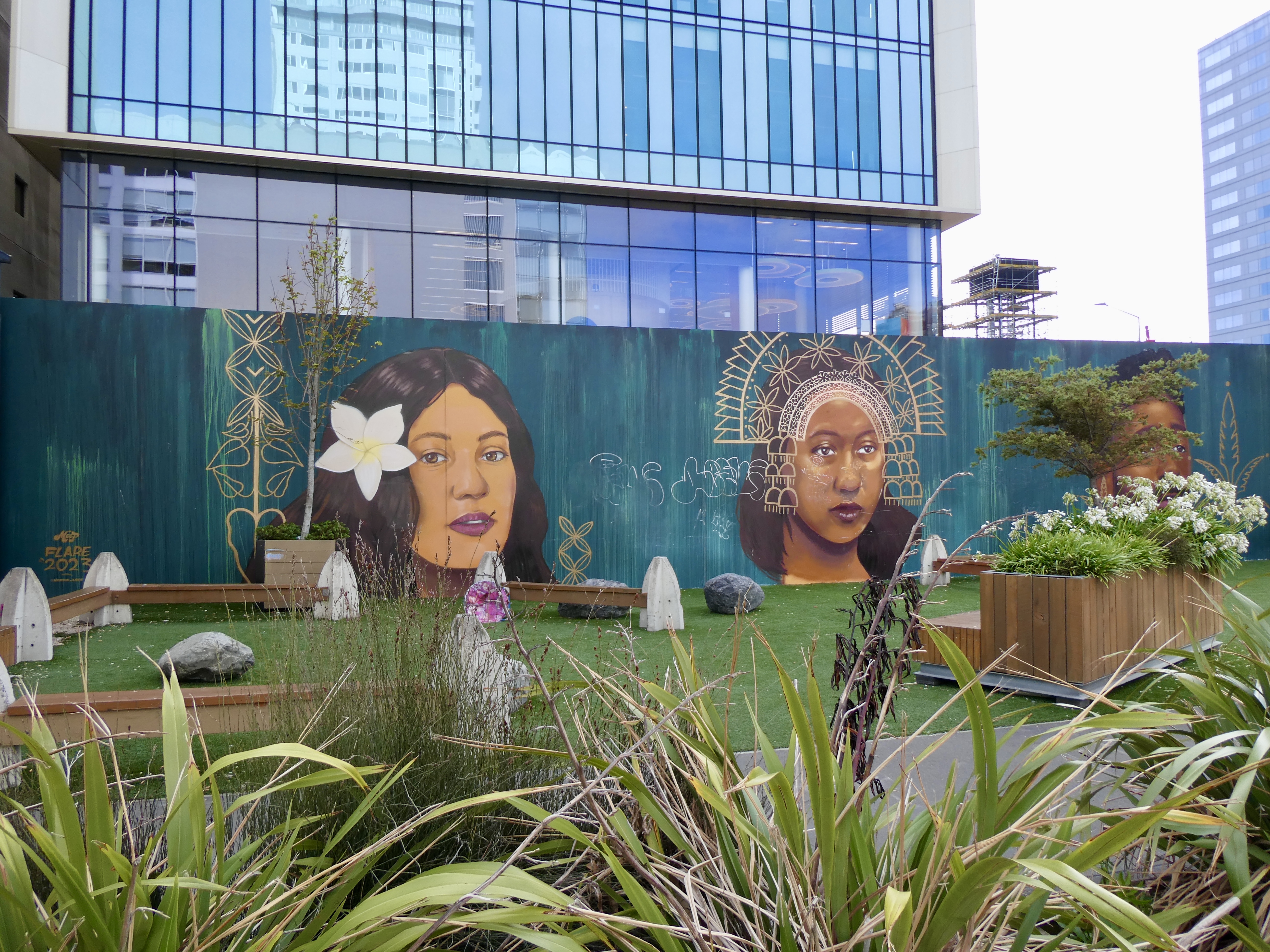 So once we were settled into our hotel and briefly rested, Tom and I ventured out for a little walking (forcing ourselves to stay awake). One of the first things we noticed was all the scaffolding that remains on a number of buildings following the February 2011 earthquake that destroyed most of the downtown area and killed 185 people. While the city, to a large extent, has been rebuilt there is still a lot of ongoing construction and to compensate for this, there are a myriad of murals and art work throughout the city. As we wandered, we past numerous murals paying homage to the indigenous peoples of New Zealand as well as the traditional historic connections New Zealand has to the world.