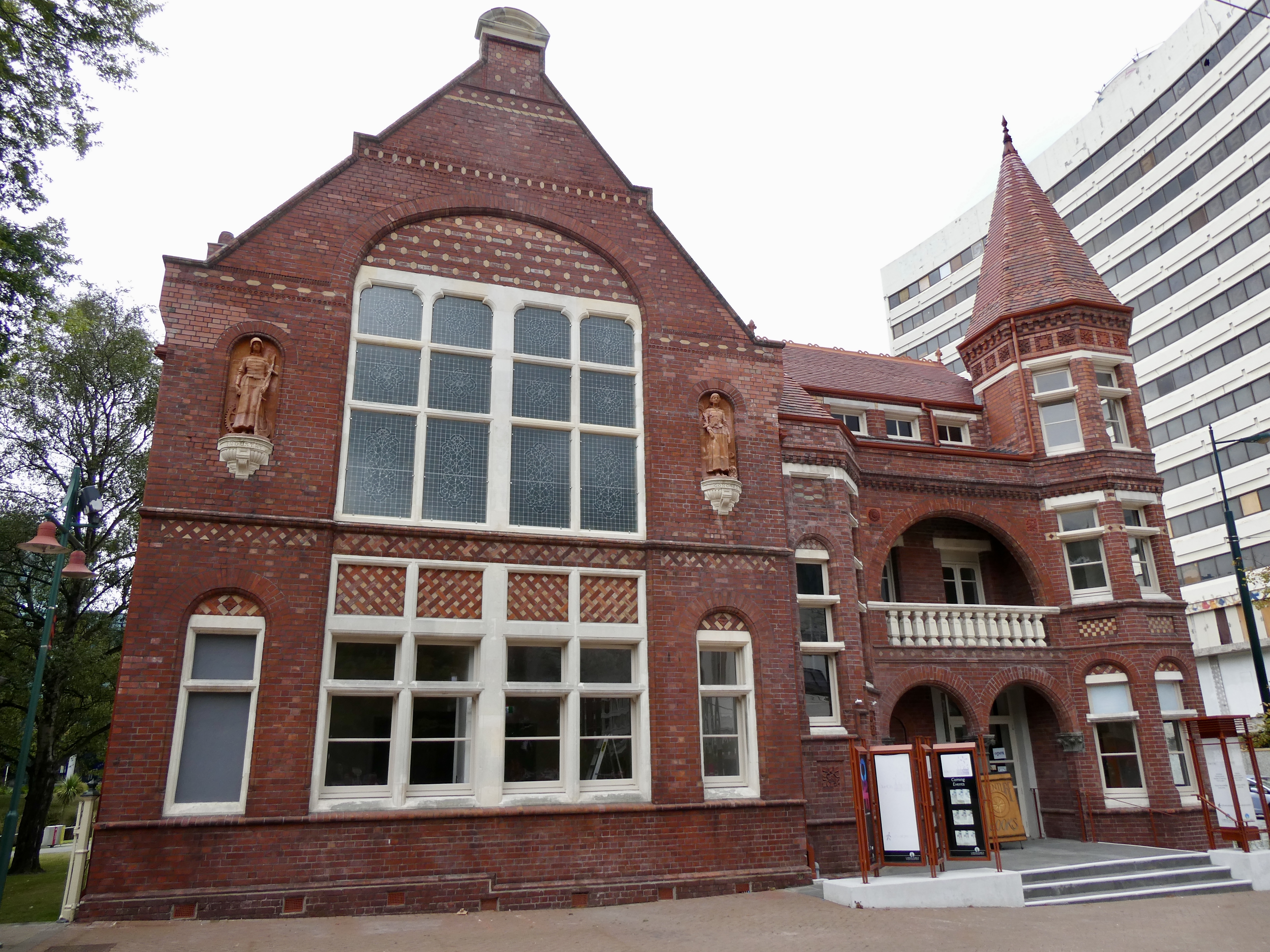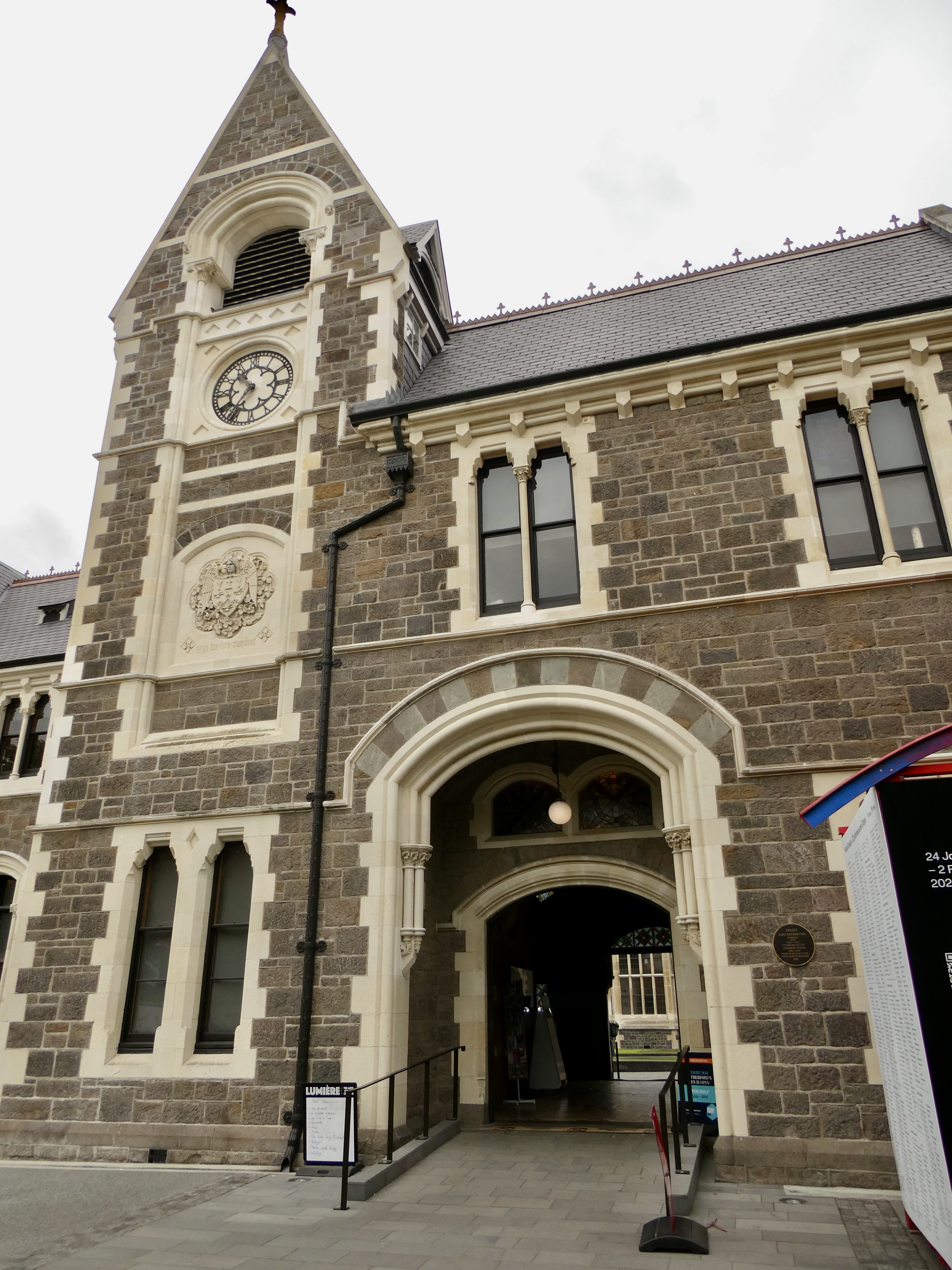 On Sunday morning, we were off and running (actually walking) with Walks Christchurch, a walking tour of the central area of Christchurch. We met our guide Grahame, along with a couple from Boston, Sheryl and David, at 10:30 a.m. after having some initial trouble finding the meeting point. New Zealanders apparently value privacy a great deal and as a result, there are virtually no numbers on buildings so when trying to find 2 Worcester Blvd., Tom and I had a bit (OK, a lot) of trouble. (Even MAPS was confusing.) Tom finally asked one of the passing tram drivers and we were directed down to the end of the road where we found the clock tower meeting point in front of The Arts Center.
