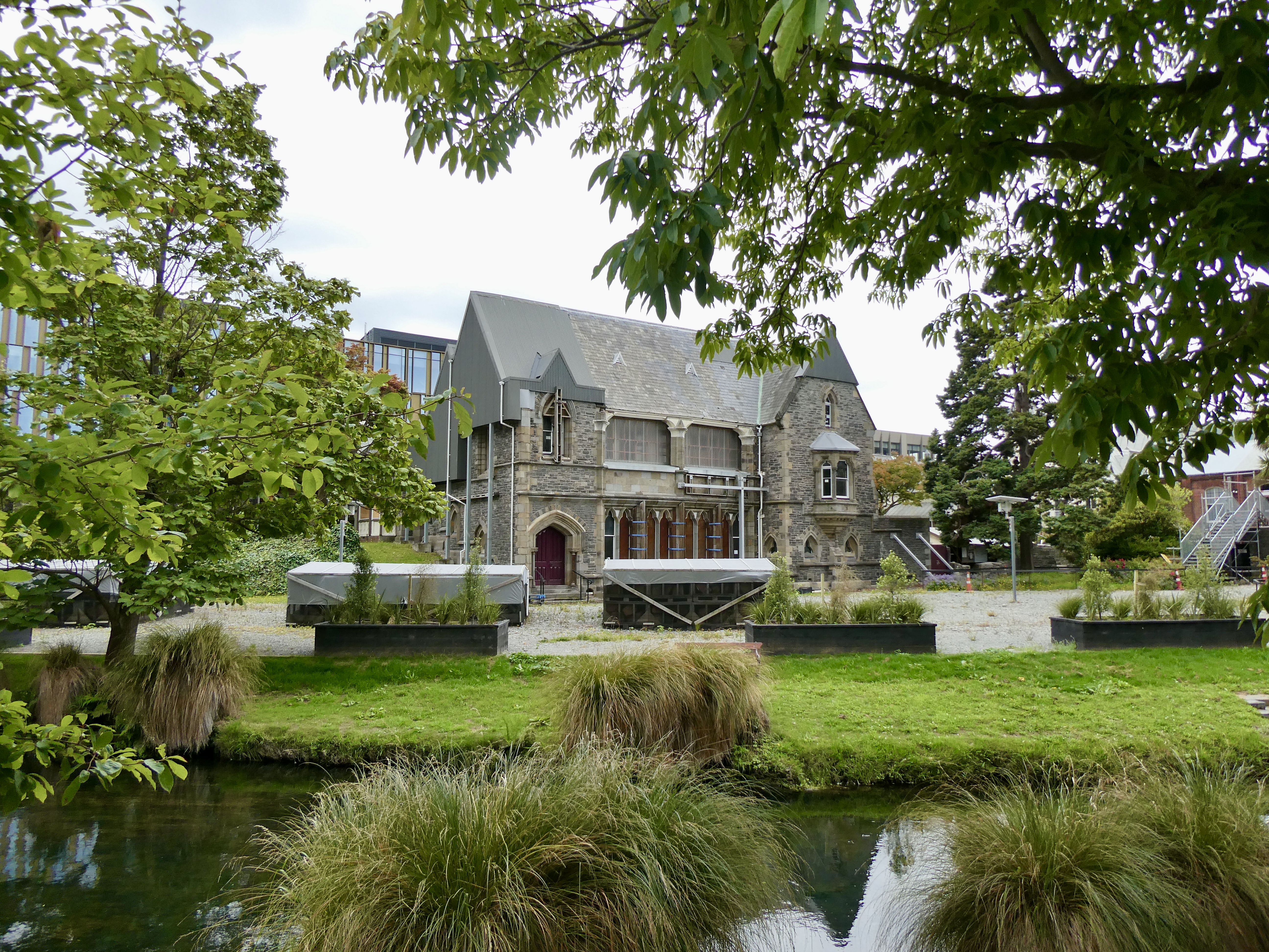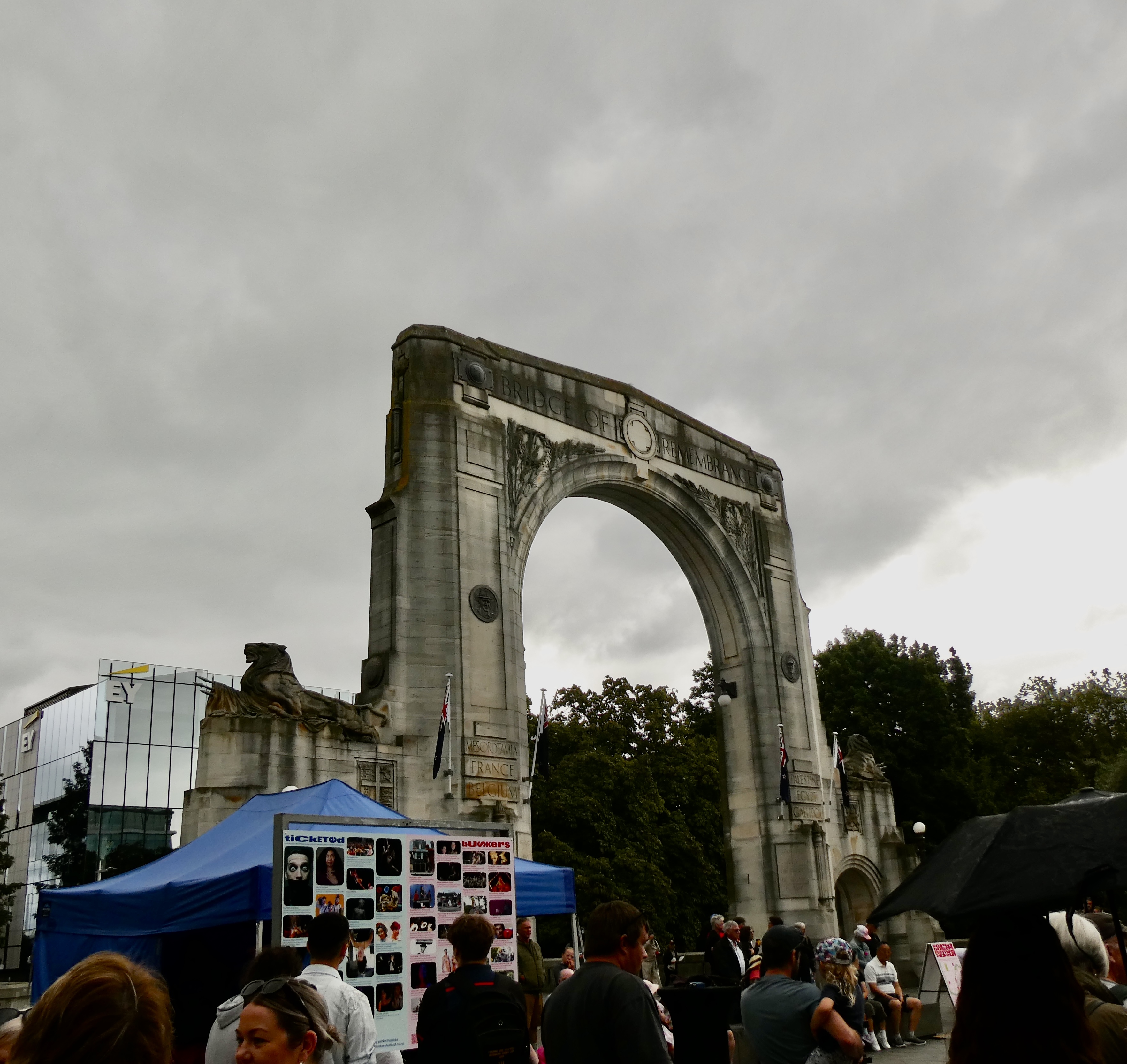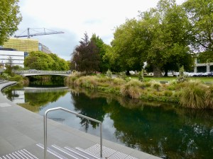 So after marveling at the mural, we walked down a narrow alley to the entrance to the market. Now this market had numerous shops, bakeries, restaurants and so on, but it was really, really crowded so it was impossible to take in all that the market offered. We ended up exiting the market, walking past the WWI arch, under which the New Zealand troops passed as they were being deployed and then crossed the street to walk along the Avon River to our last stop of the day, the earthquake memorial.