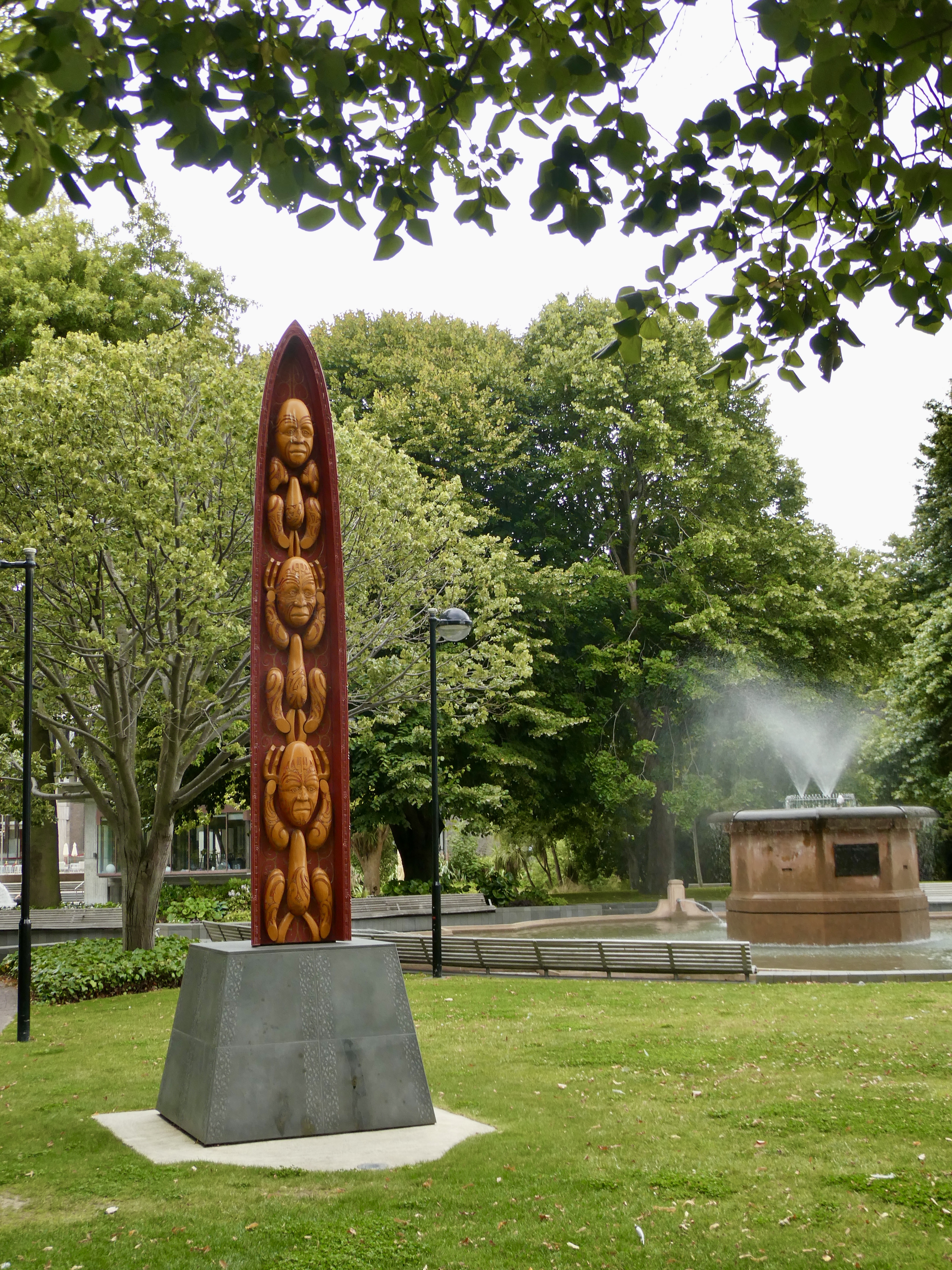 So after walking through the old university grounds, we moved on down the street past an additional art museum to the Christchurch city counsel building where there is a monument out front to the indigenous people who are regularly consulted on all things that affect the land and the governing of the city.