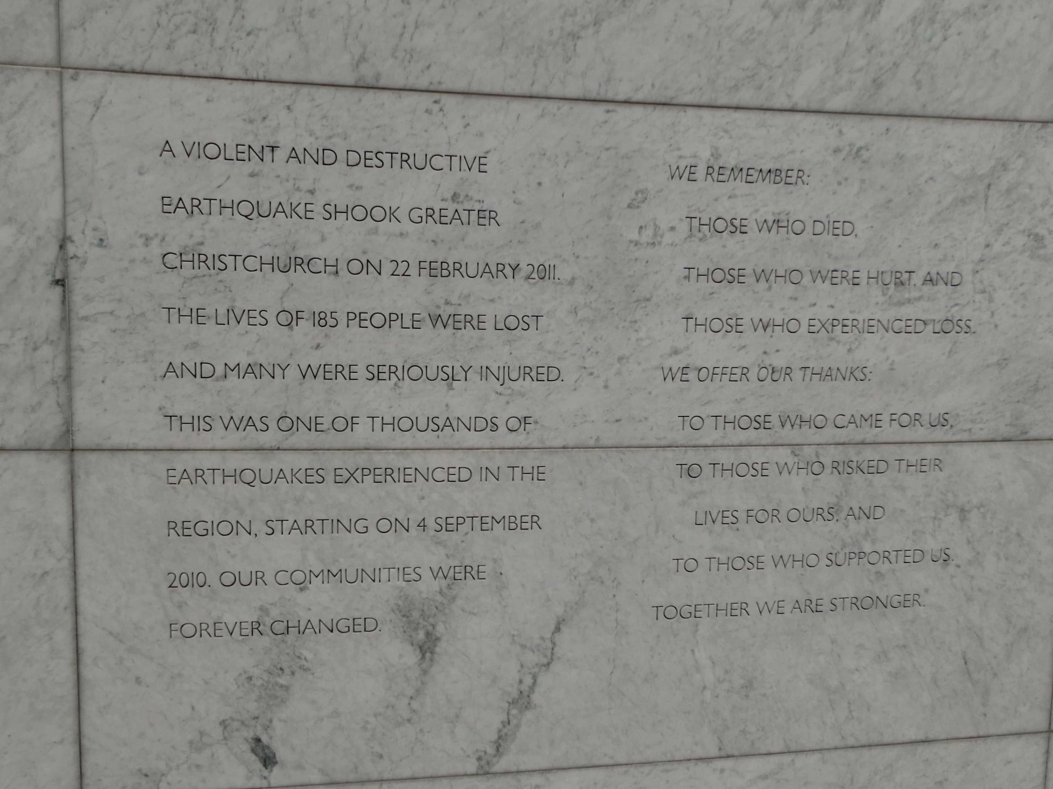 Now this memorial was really, really special. First, there was a large stone or pounamu (as it is known is Māori) at the entrance, which follows the Māori tradition of placing such a stone at important entranceways and requires the ritual of touching the stone to connect visitors to the land of those who were there before us. The memorial is then divided into three spaces. The south bank features the memorial wall where the names of the 185 people who lost their lives are commemorated. The north bank has a park like atmosphere with seating areas where people can come and reflect. Finally, there is the river, which has been slowed so that it seems like it is not even moving (no idea how this was accomplished). It was a really lovely tribute to a horrific disaster.