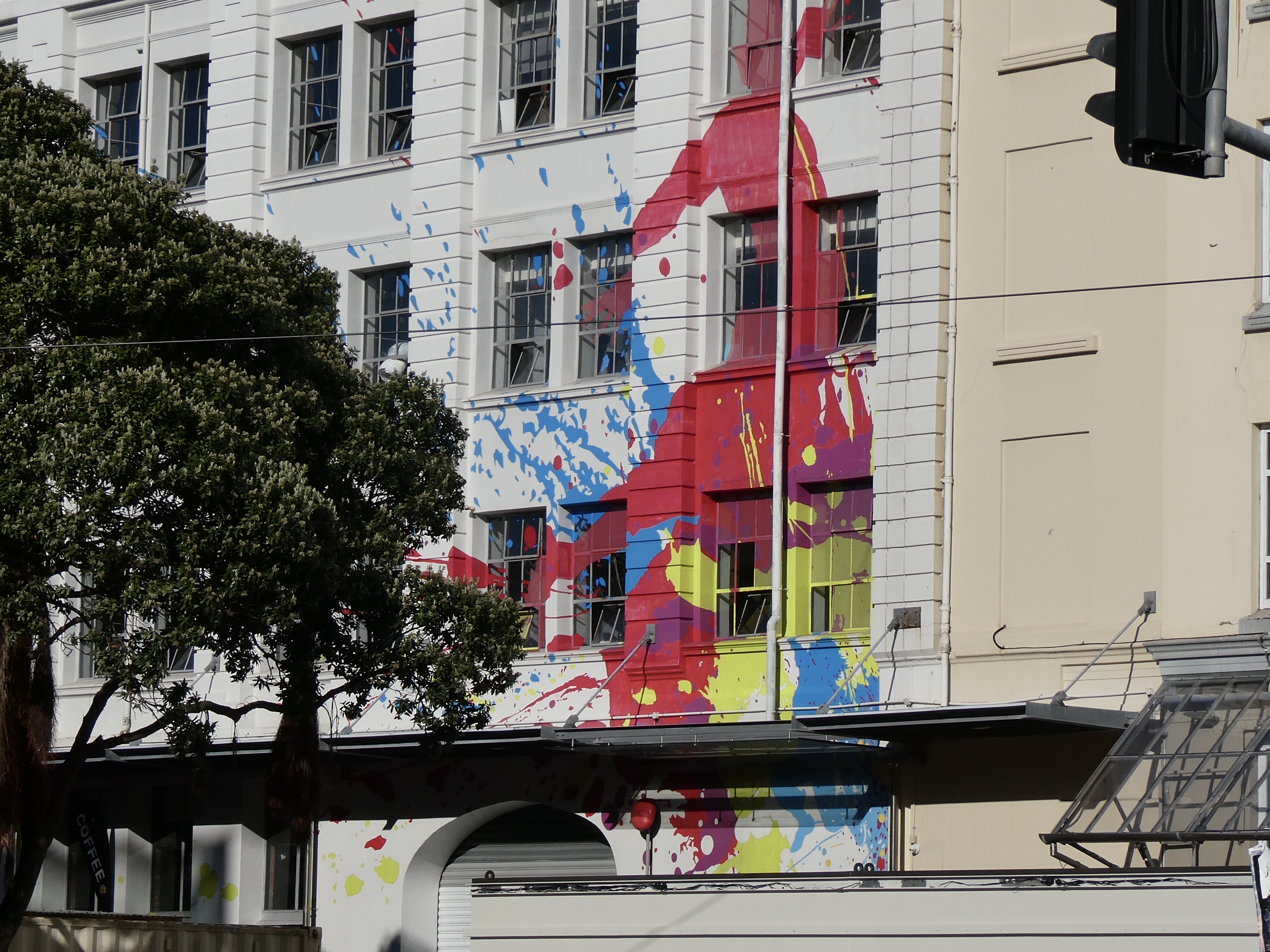 Anyway, once we crossed the street to the Haka, we passed a portion of a building that was labeled “Move” (you can see the letters in the upper right of my picture). Apparently this building was part of the old museum hotel that stood on the site where the new museum has been built. They wanted to preserve part of the hotel so this part of the building was moved across the street over the course of a week and is now part of the new QT Hotel.