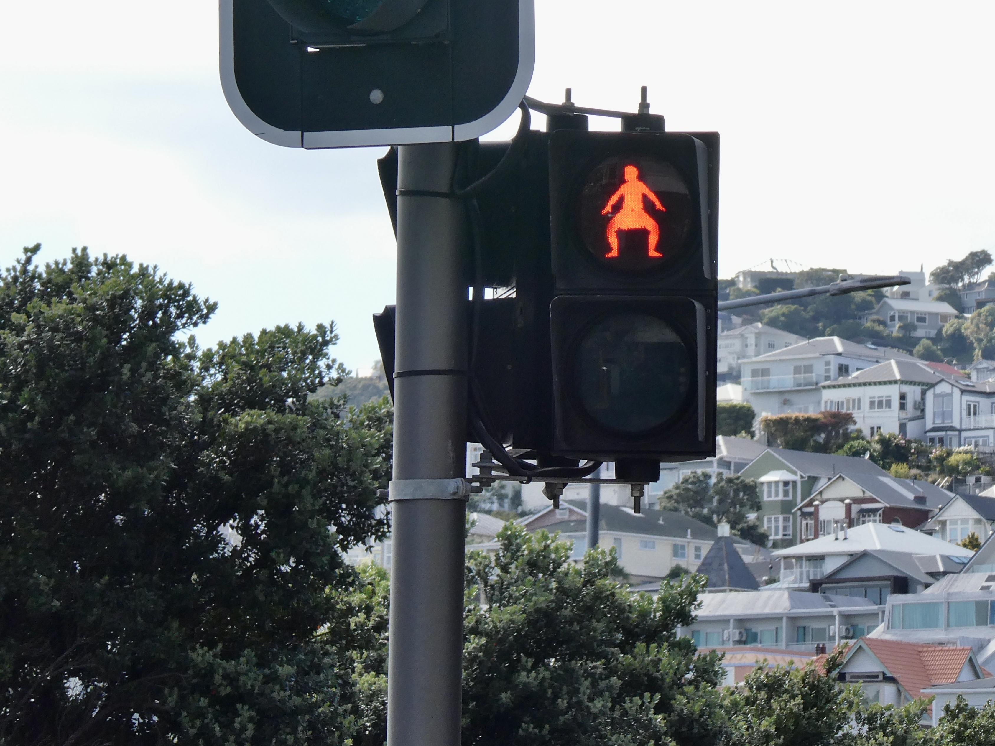 Once we left the convention center, we crossed the street and Jon pointed out that the crossing and stop signs featured Māori figures doing the Haka (one in a classic pose to stop and one standing up with arms extended to go). Apparently they were installed in 2019 to celebrate a Māori festival and they proved so popular that they remain.