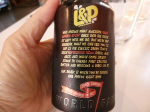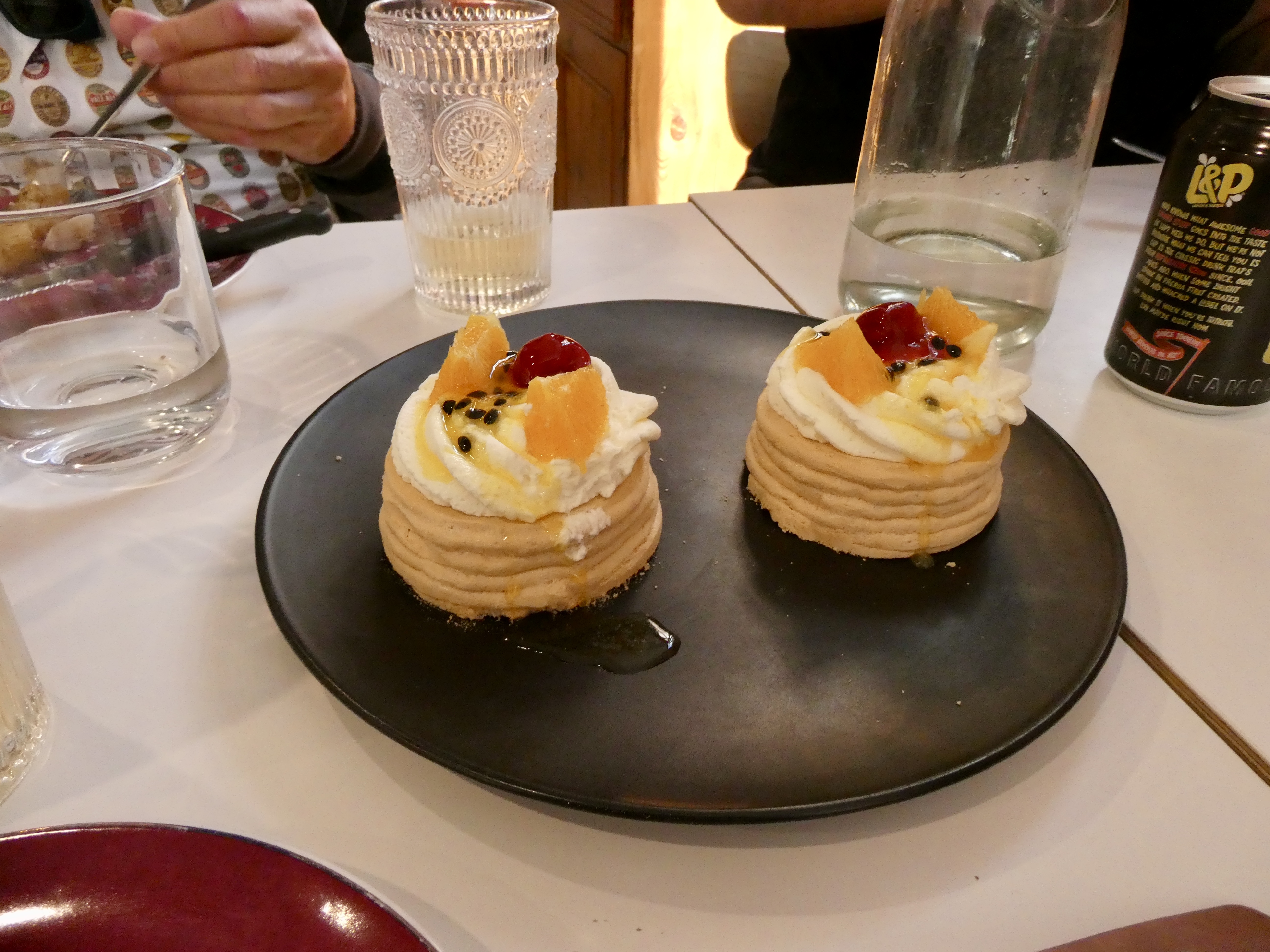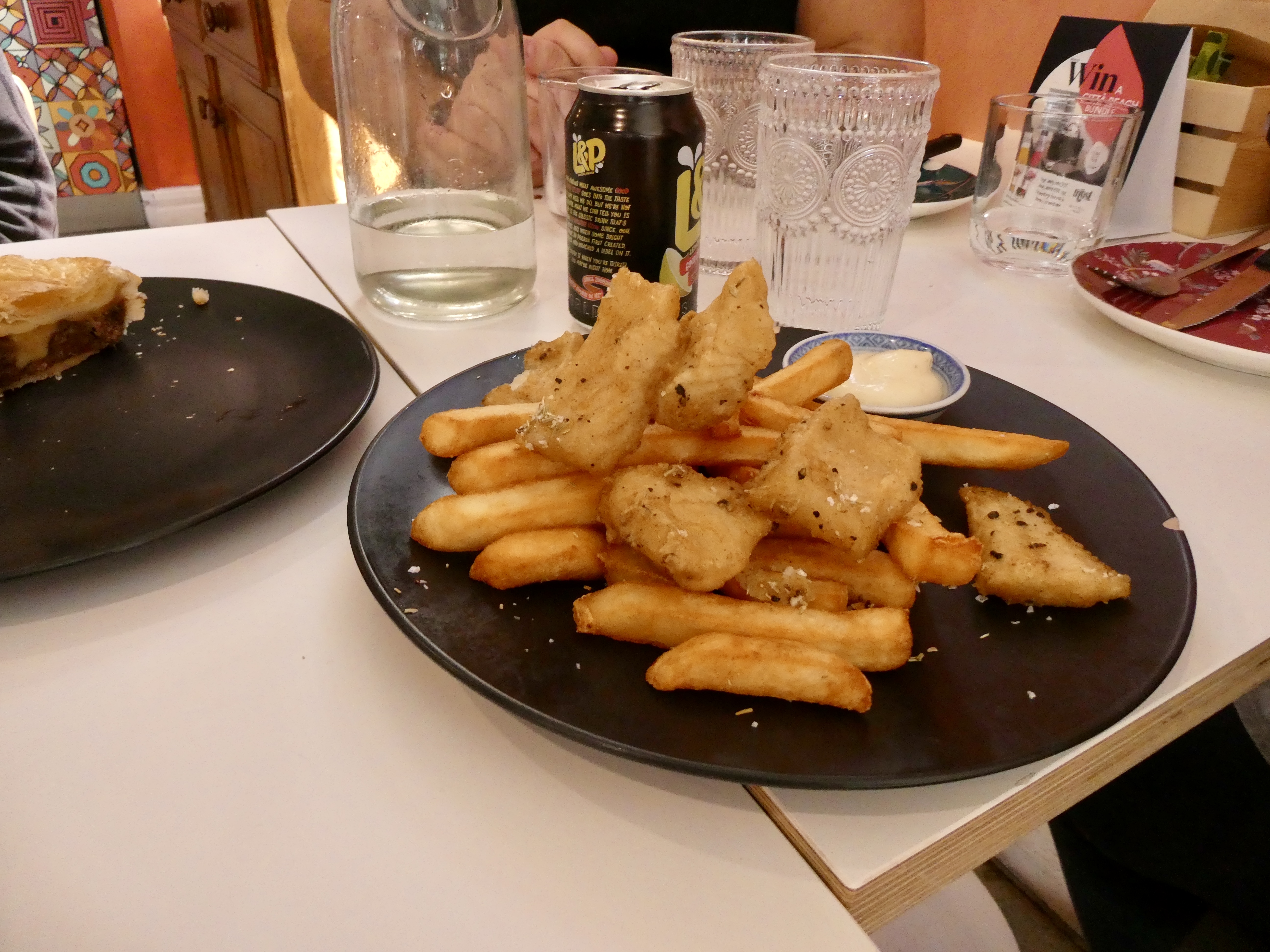 Once we sat down, we were served a glass of L&P, a uniquely New Zealand drink (with a very cheeky label) that tasted like sparkling lemoncello. Delish. We were then served a mince (steak) and cheese pie followed by fish and chips. The fish was tarakihi (a local NZ specialty – delish) and was seasoned with kawakawa, an herb with medicinal/anti-inflammatory properties. Both dishes were outstanding. I can certainly understand why the business has expanded to two locations. Flaky pastry, light breading on the fish and fluffy fries. Perfection.