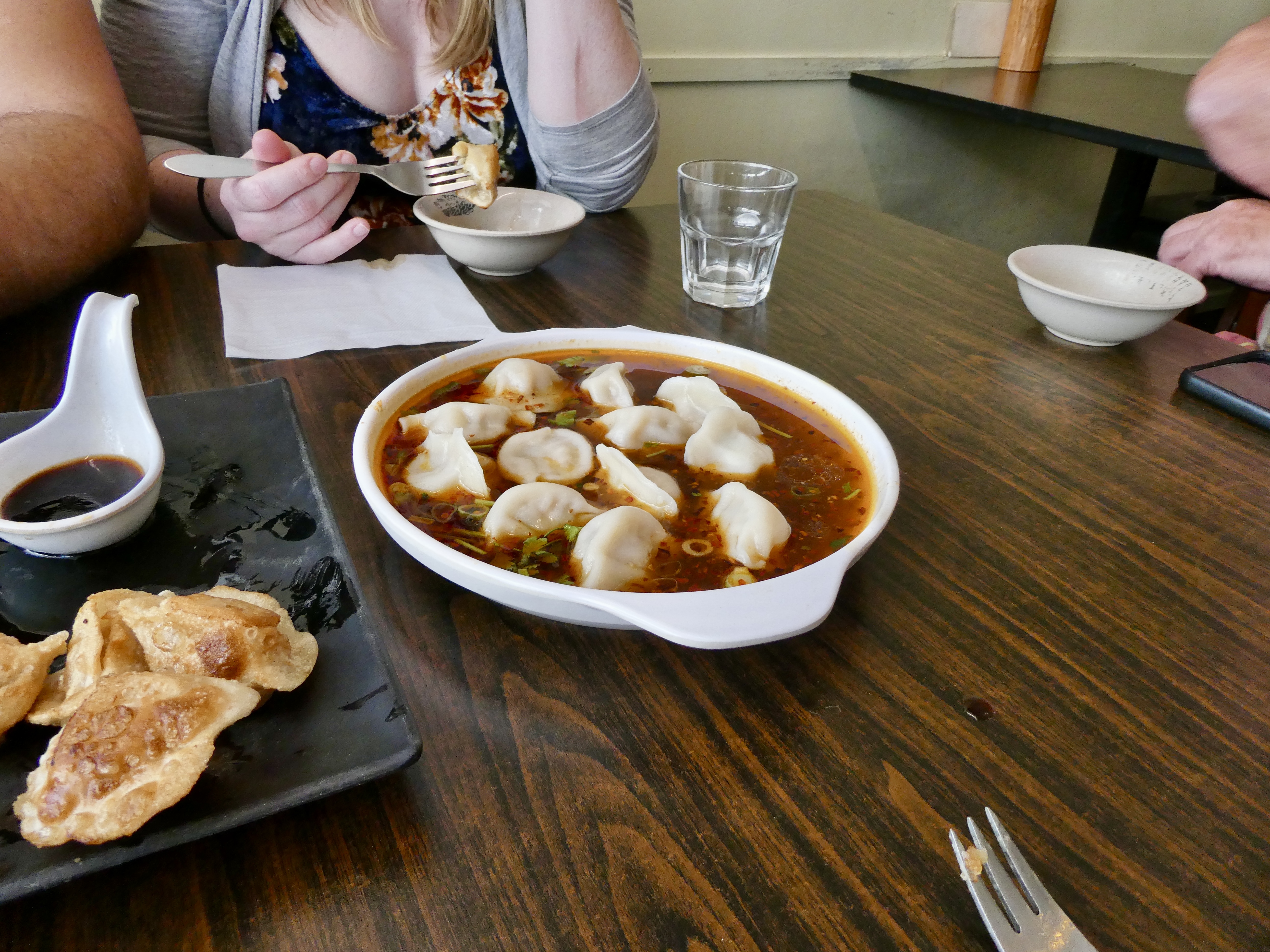 Now our next stop was one I had been waiting for all day as Jon had raved a few times about the chili oil dumplings we would be eating. So we walked about a block down the street to the Satay Palace where we sat down and were each given one paper napkin from the proprietor. (Jon told us not to lose the napkin because the proprietor was apparently stingy on the napkins and you only get one… seriously!)