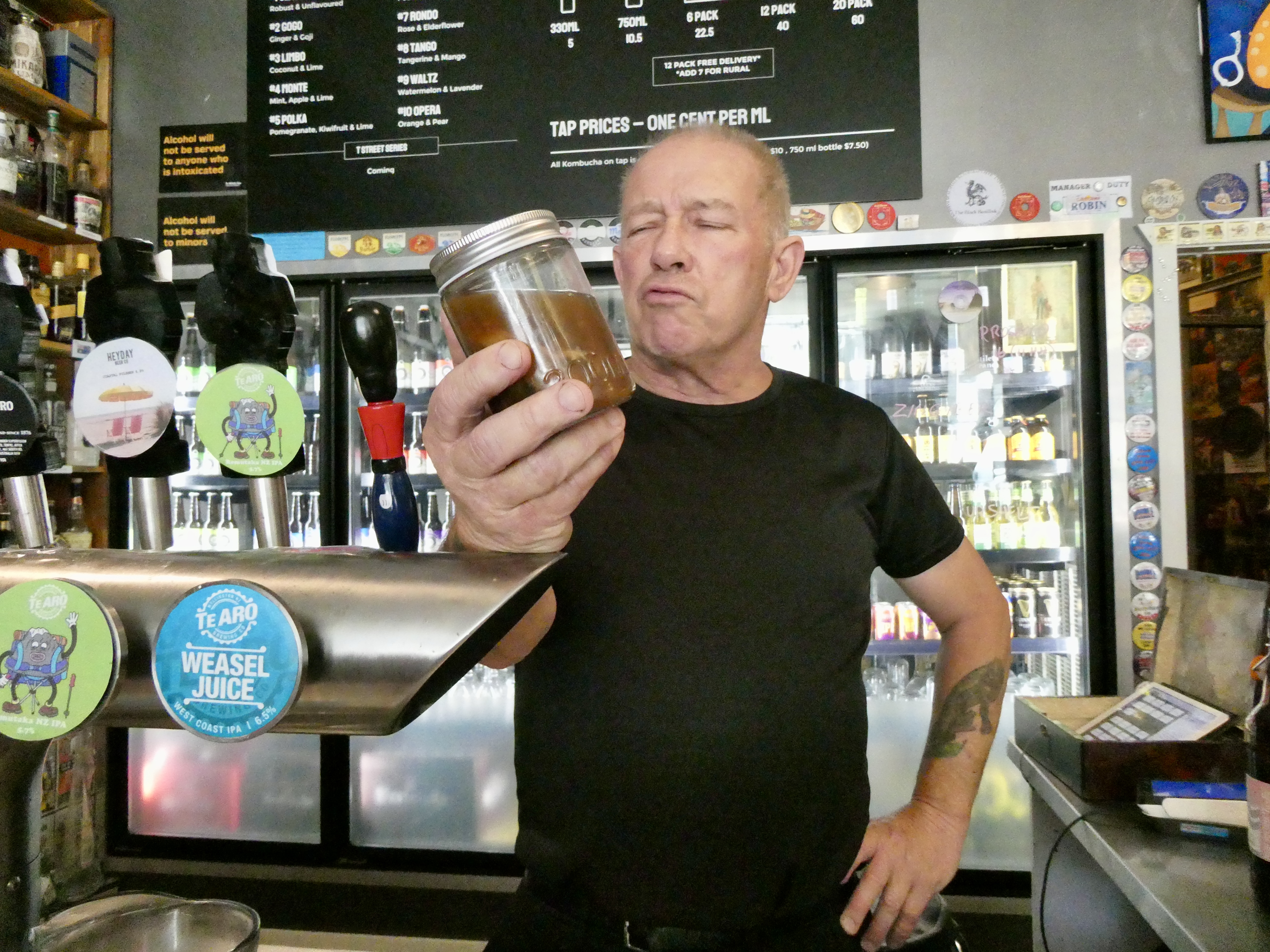 Anyway, it turns out that Robin brews his own kombucha and this is not the vinegary kombucha from the U.S. This kombucha is home made and features a variety of flavors. We ended up trying (i) ginger and goji, (ii) coconut and lime, (iii) pomegranate, kiwi fruit and lime, (iv) peach and passion fruit, and (v) tangerine and mango. Now I have not been a fan of kombucha, but this stuff was fantastic. And the tangerine and mango was off the charts good. And while I enjoyed the kombucha, Tom ended up having a taste of a couple of Robin’s on beers on tap.