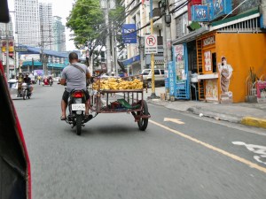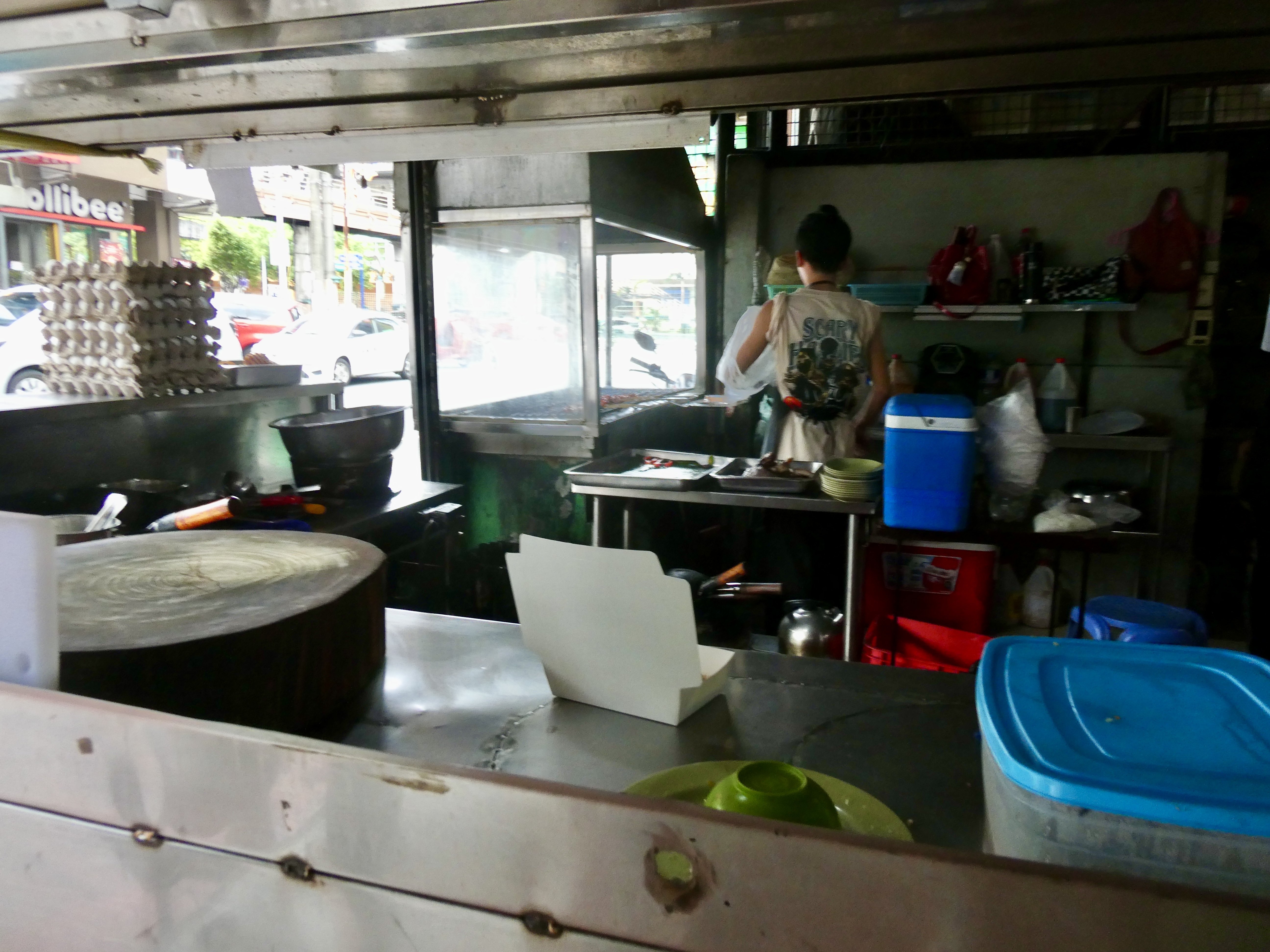 At 3:30, I ordered a GRAB (the Asian version of Uber) to meet Nel who was going to be my guide for a street food tour in Mandaluyong City, about 20 minutes from my hotel. I arrived right at 4:00 and Nel provided me with a brief introduction of what we would be eating and some history of the food culture in Manila (which has been heavily influenced by the myriad of conquerors in this country, including the Chinese and the Spanish). We then we set off to find a Manila version of a Tuk Tuk, which turned out to be a motorcycle with a roofed sidecar, which we were going to take up the street to our first destination.