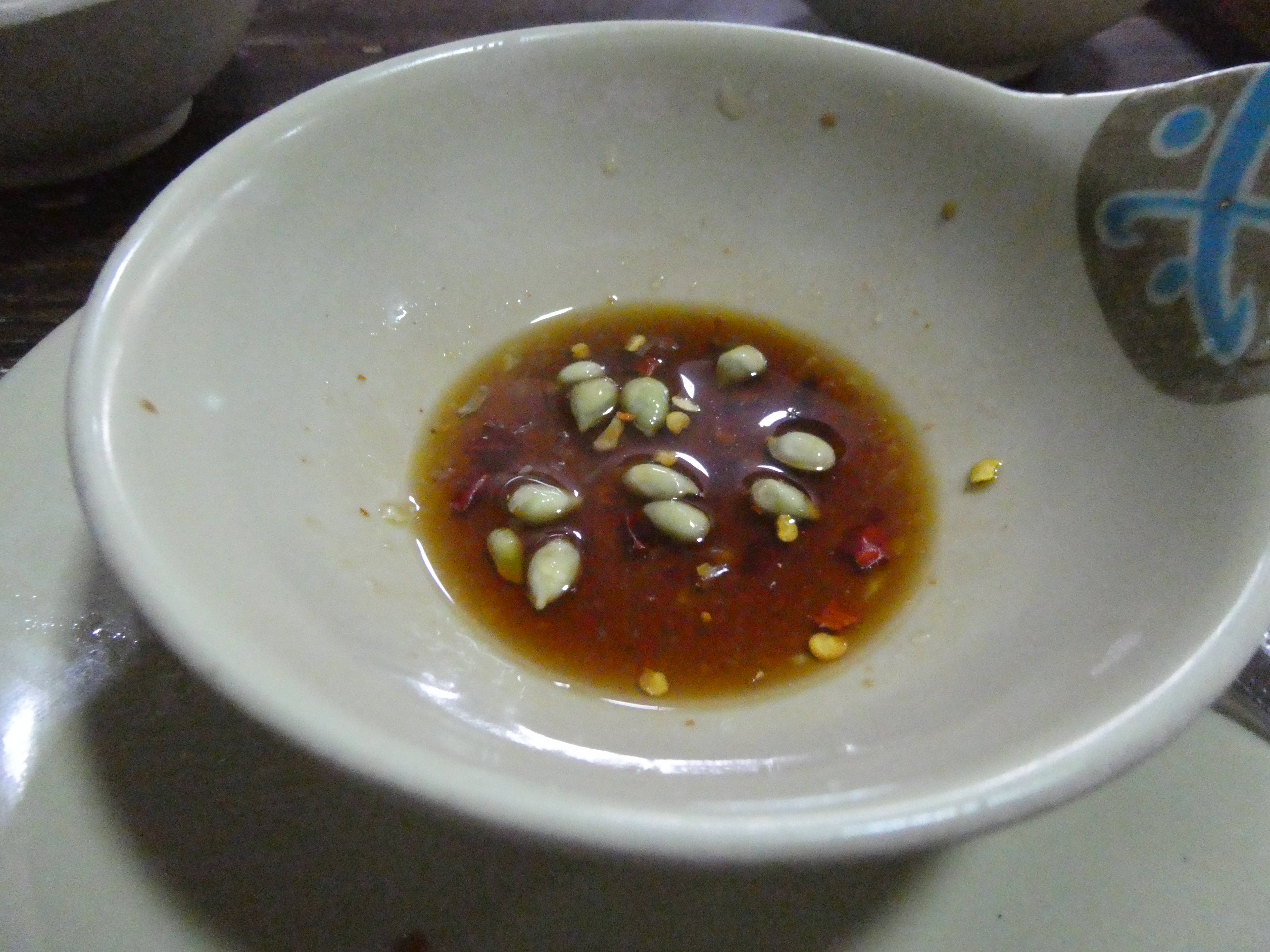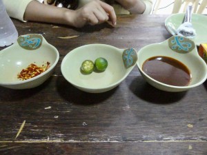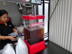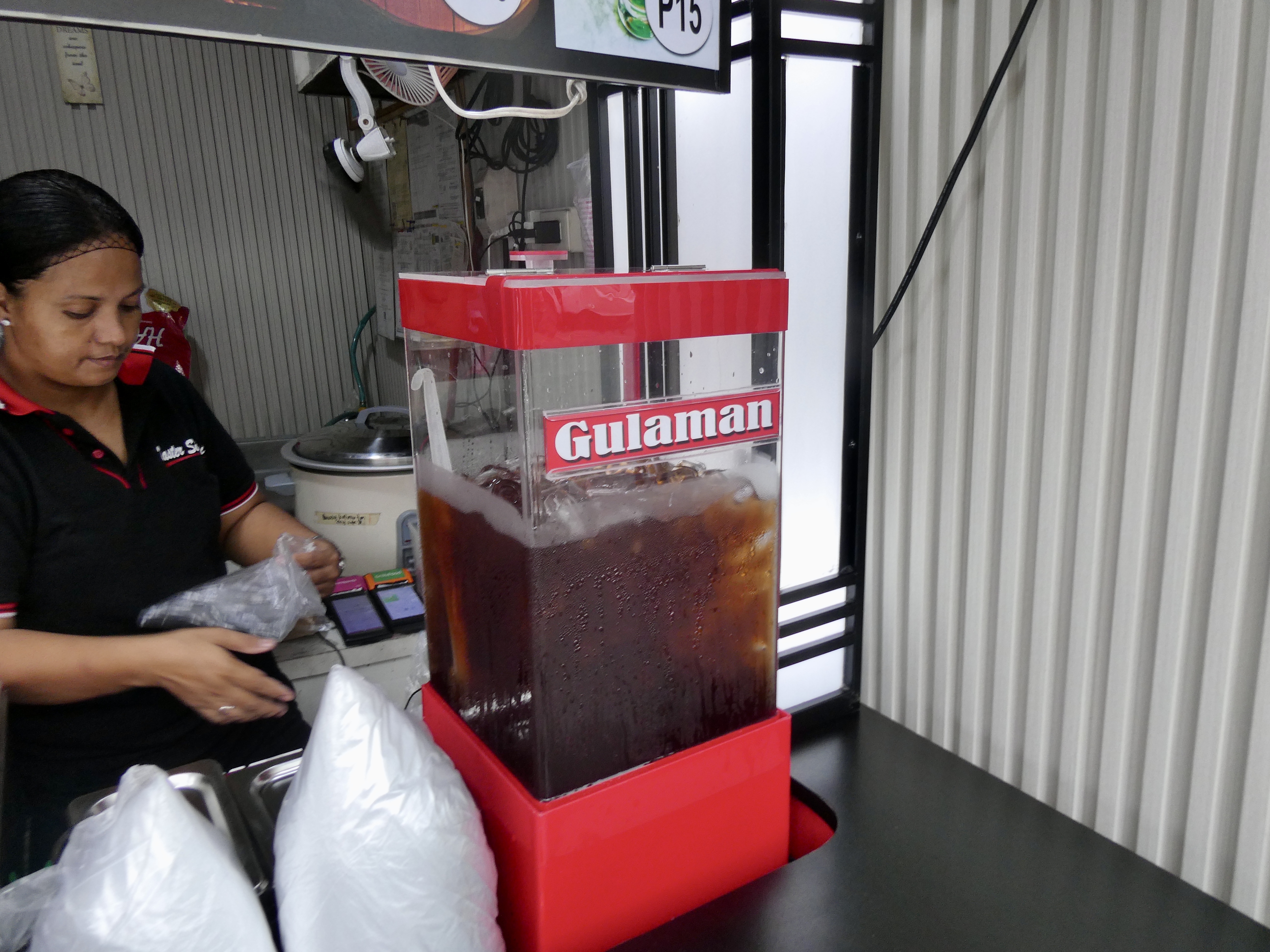 So once Nel ordered the skewers and we took a seat, Nel walked me through the popular Filipino pass time of dipping their meat into sauces, including “banana ketchup”, which Nel said I should try with my skewers. Apparently, Filipinos do not have a lot of tomatoes so someone came up with the bright idea of using bananas (which they have a lot of) as a base for ketchup. Not sure about the red colour, but the ketchup on my table definitely had a banana/sweet taste to it.
