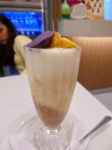 Our last stop was back to the main road and across the street to Ben’s Halo Halo ice cream. Now halo-holo means “mix mix” in Tagalog (a language in the Philippines) and the reason for the name is that after the dish, which is made of crush ice, evaporated milk, and fruits, corn, jellies and ube, is served, you are expected to mix all the ingredients together before eating. The dish is very popular in the Philippines especially during the hot and humid summer months.